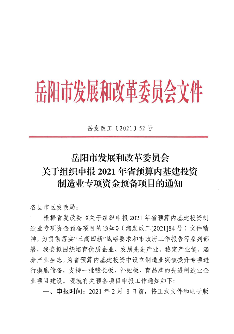 关于组织申报2021年省预算内基建投资制造专项预备项目的通知