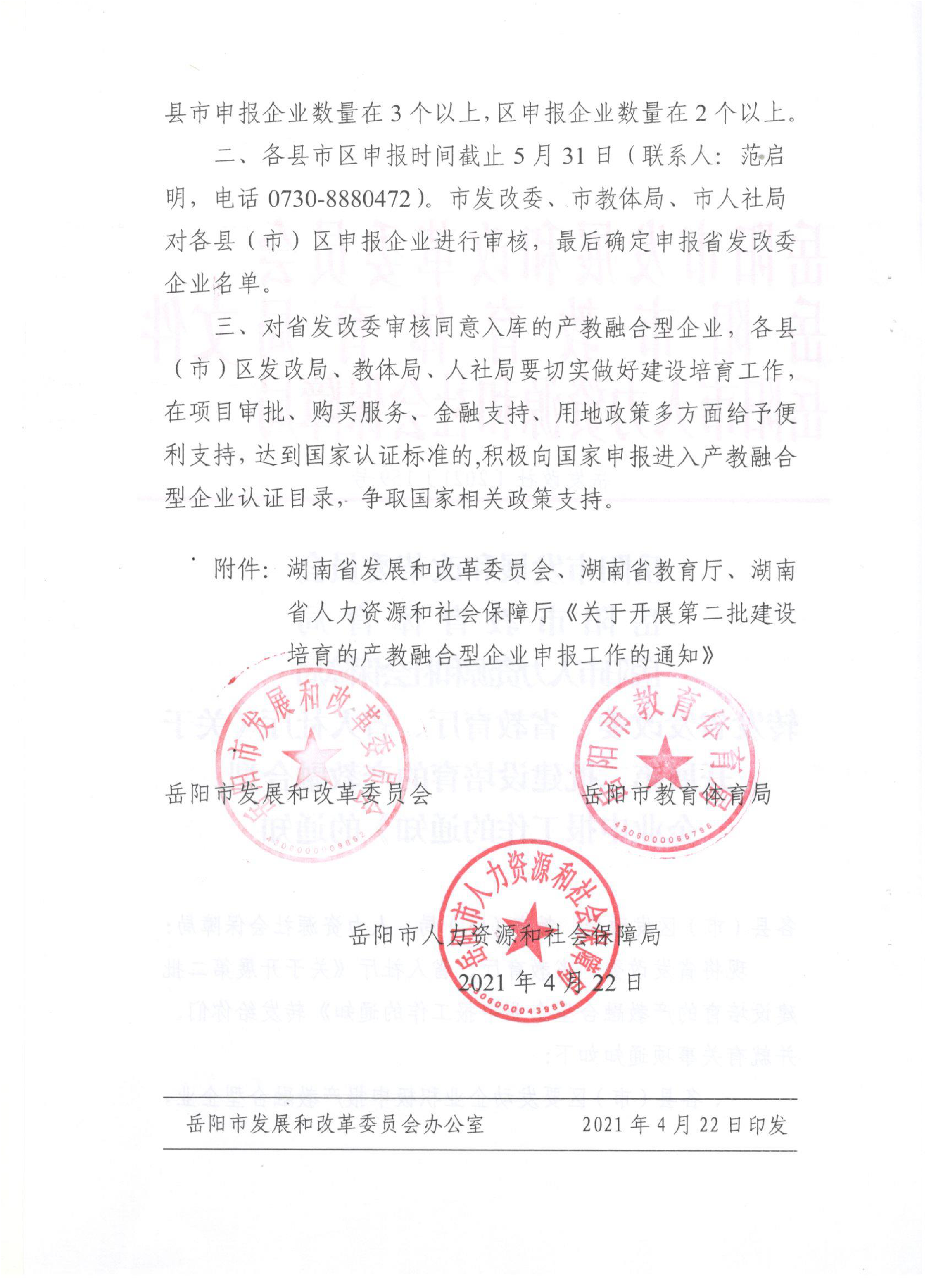 关于开展第二批建设培育的产教融合型企业申报工作的通知