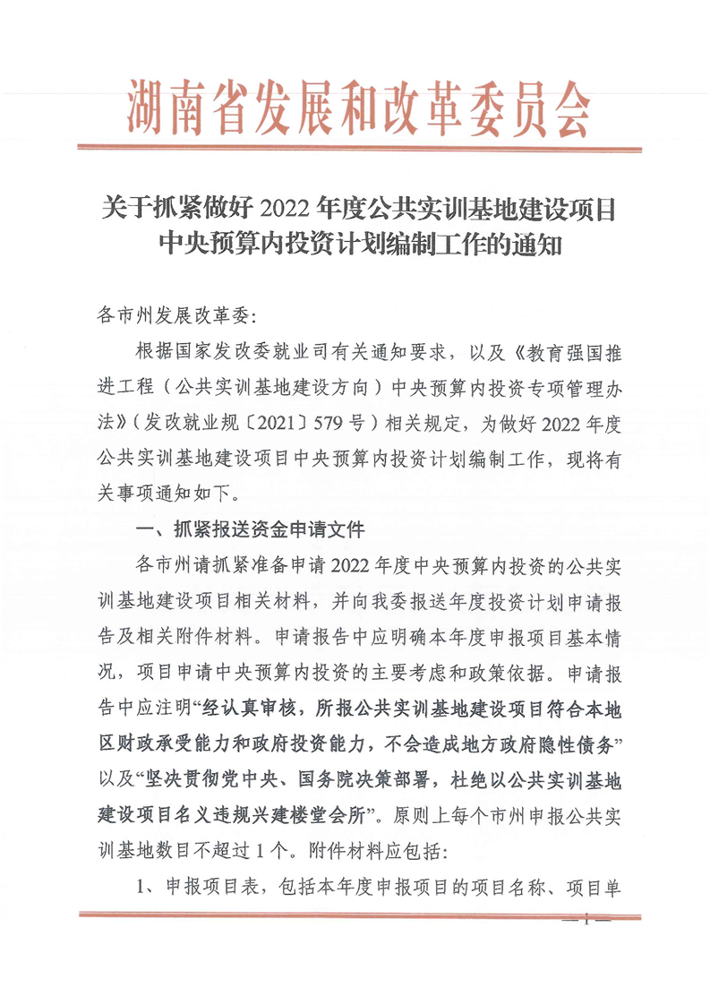 关于抓紧做好2022年度公共实训基地建设项目中央预算内投资计划编制工作的通知