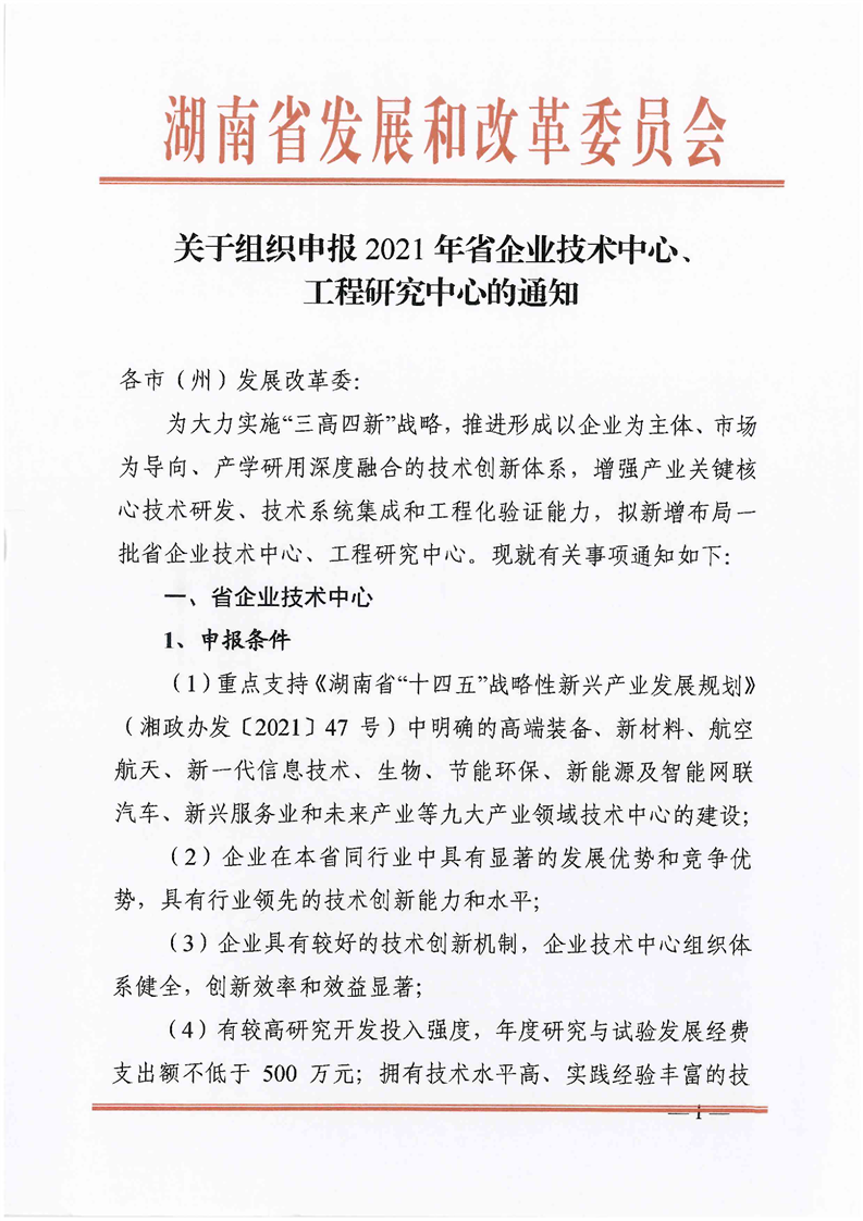 关于组织申报2021年省企业技术中心、工程研究中心的通知