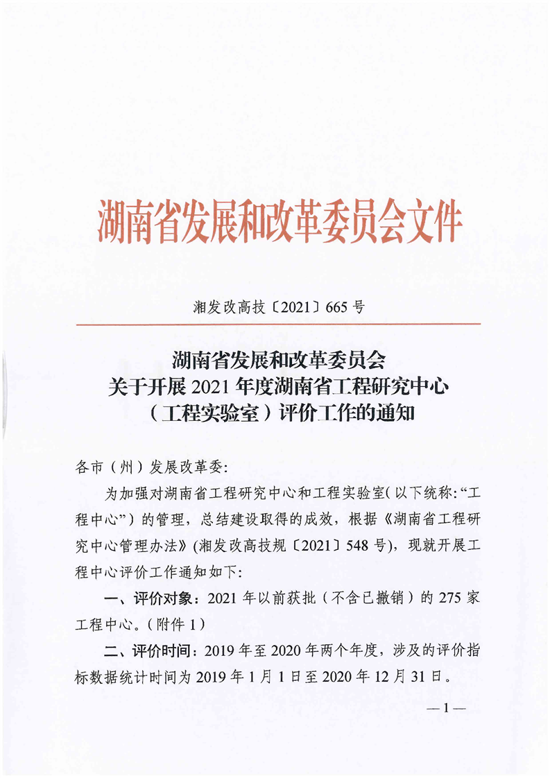 关于开展2021年度湖南省工程研究中心(工程实验室)评价工作的通知