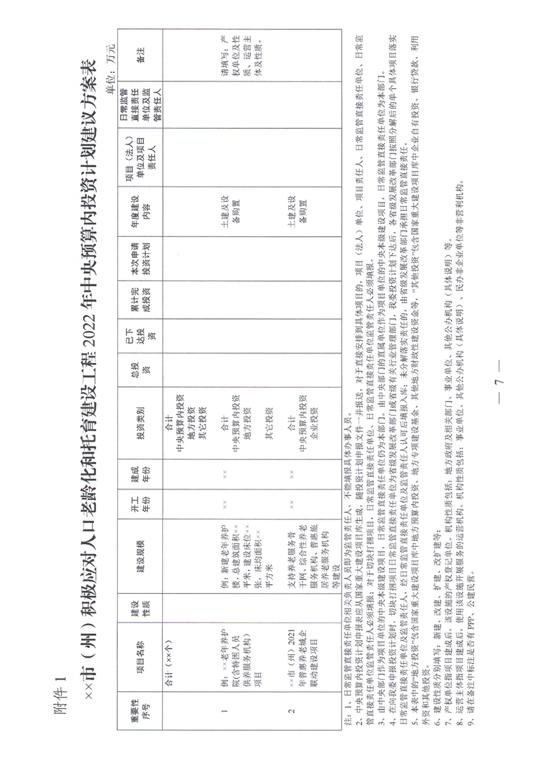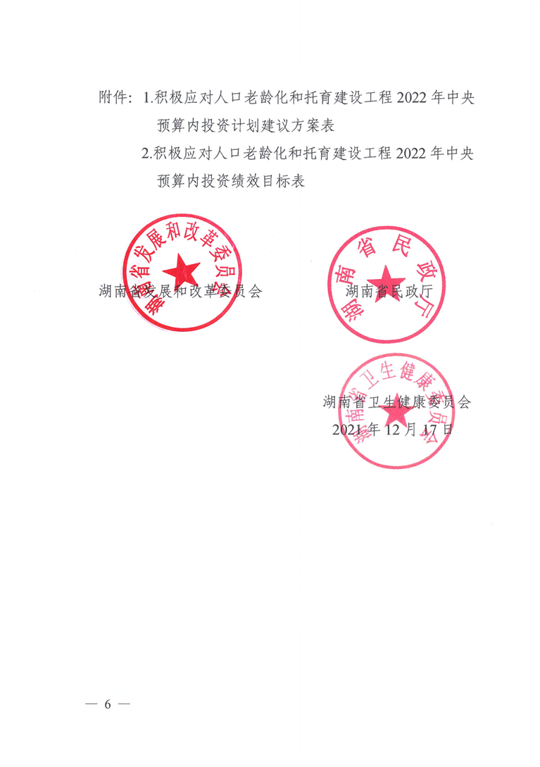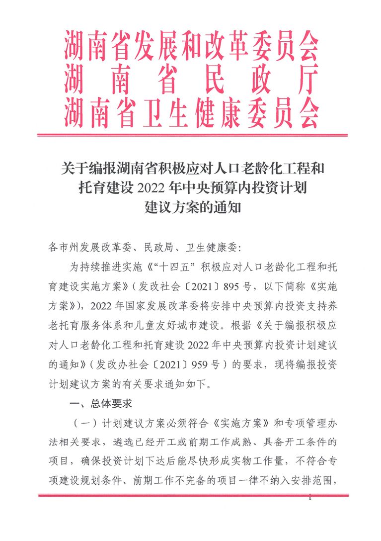 关于编报湖南省积极应对人口老龄化工程和托育建设2022年中央预算内投资计划建议方案的通知