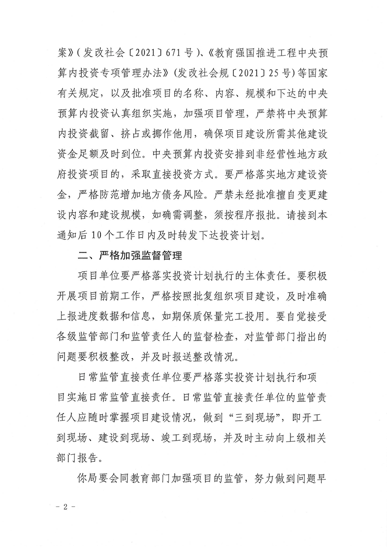 关于转发下达教育强国推进工程2022年中央预算内投资计划的通知