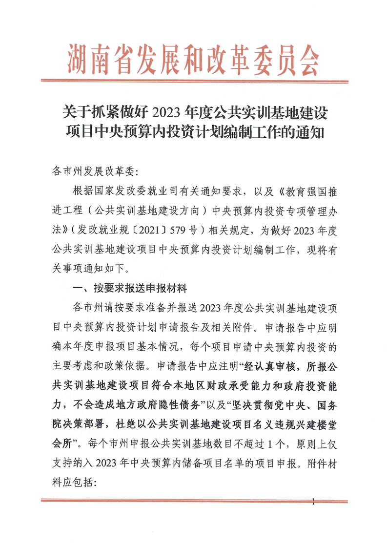关于抓紧做好2023年度公共实训基地建设项目中央预算内投资计划编制工作的通知