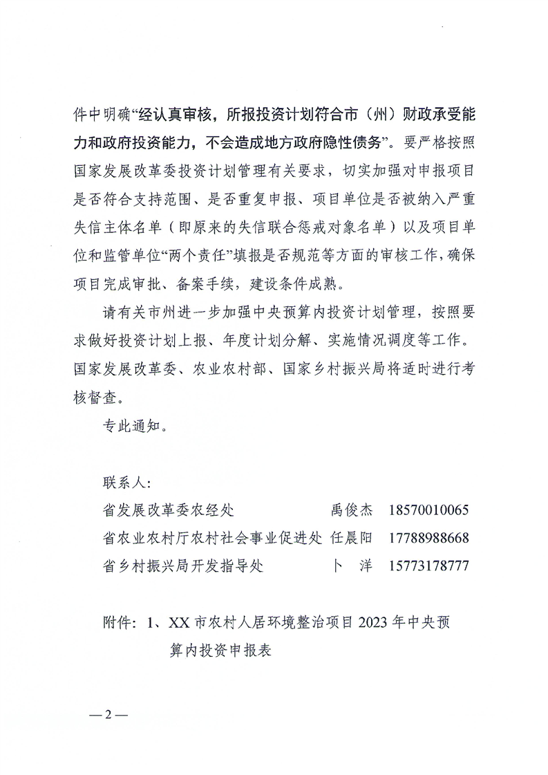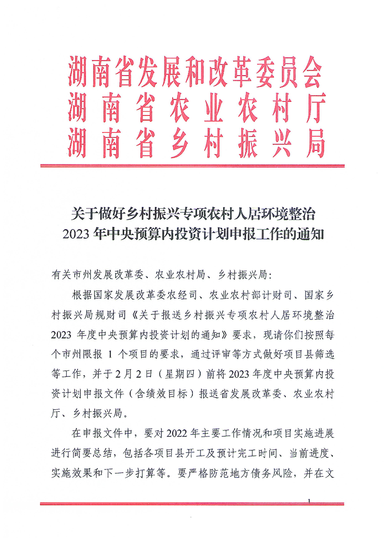 关于做好乡村振兴专项农村人居环境整治2023年中央预算内投资计划申报工作的通知