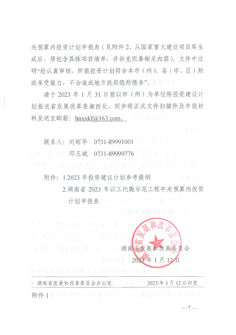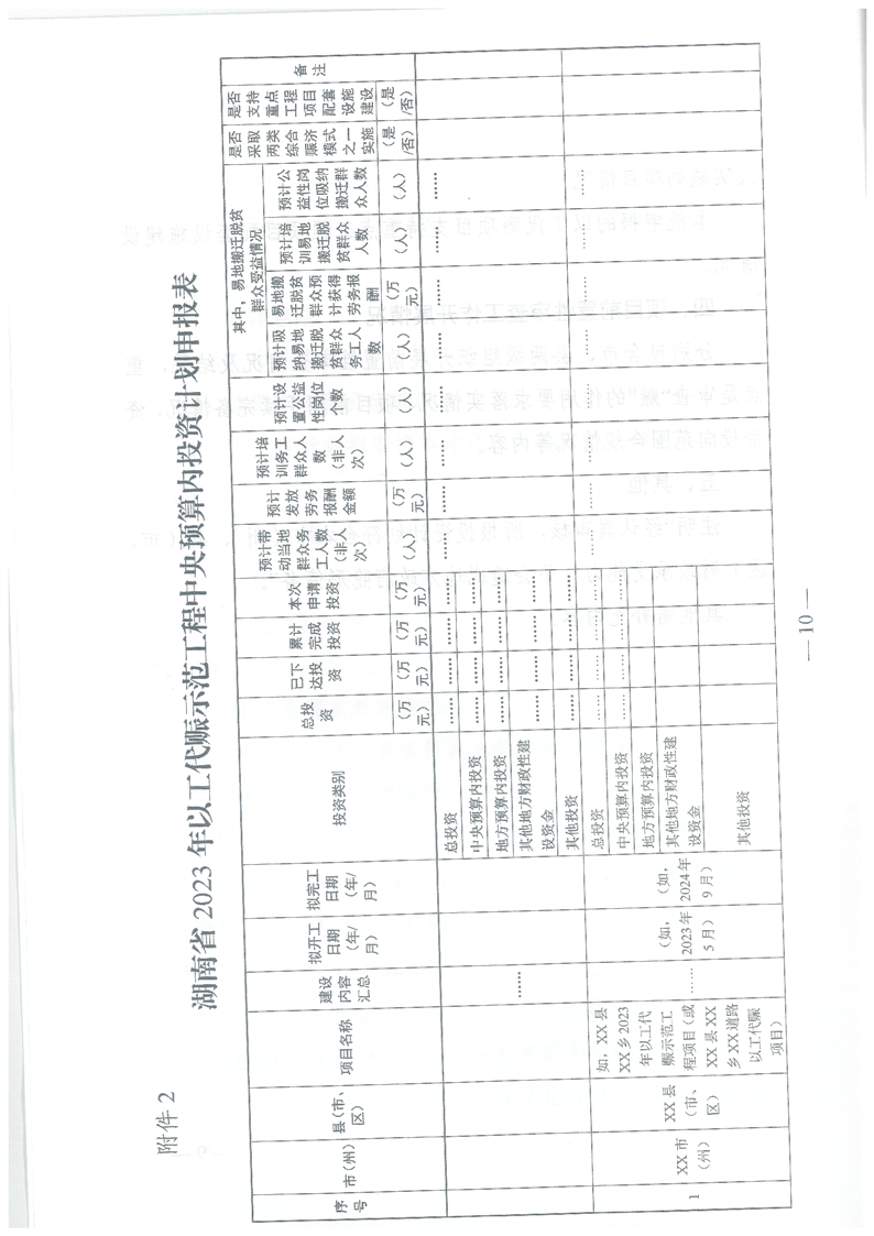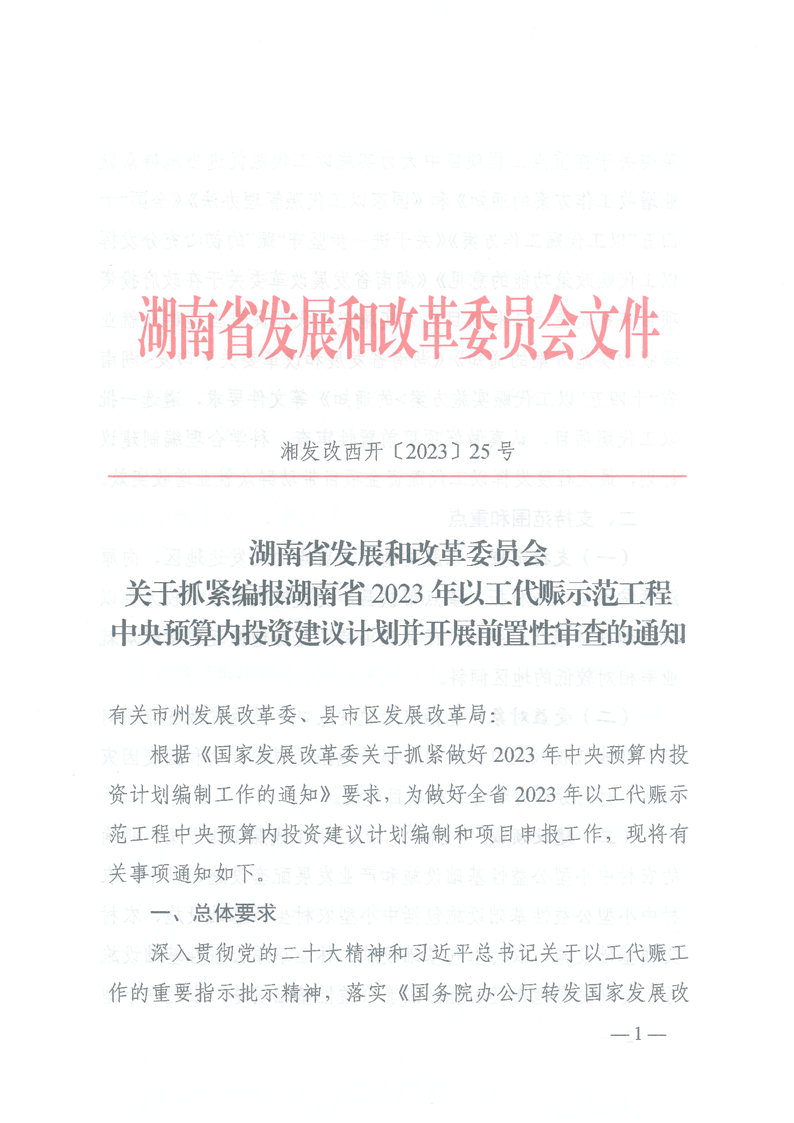 关于抓紧编报湖南省2023年以工代赈示范工程中央预算内投资建议计划并开展前置性审查的通知