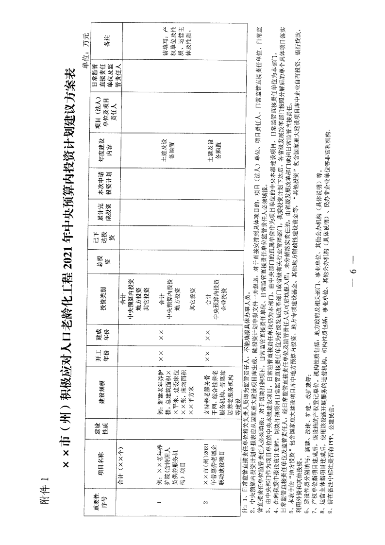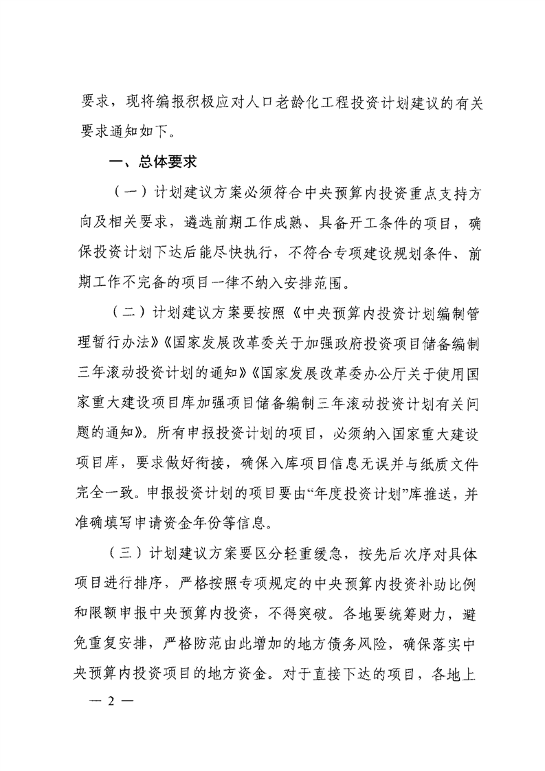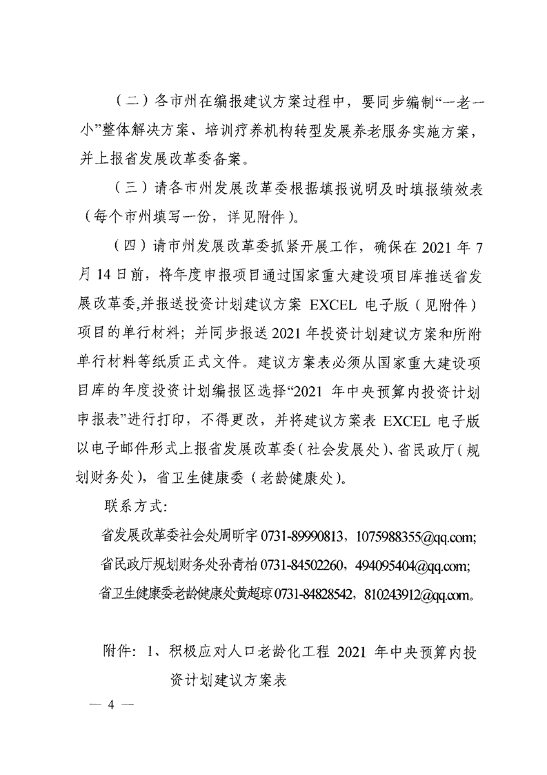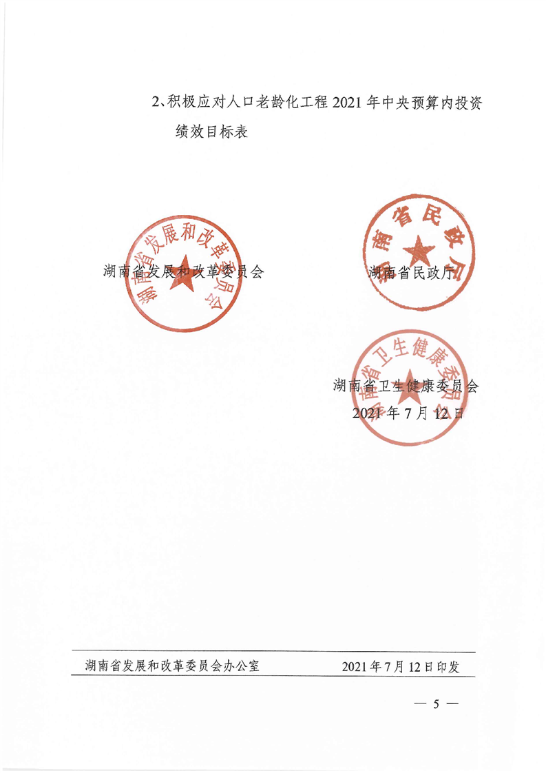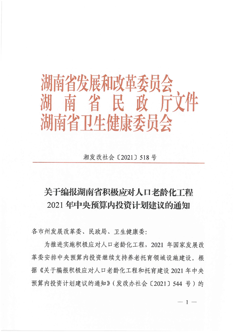 关于编报湖南省积极应对人口老龄化工程2021年中央预算内投资计划建议的通知