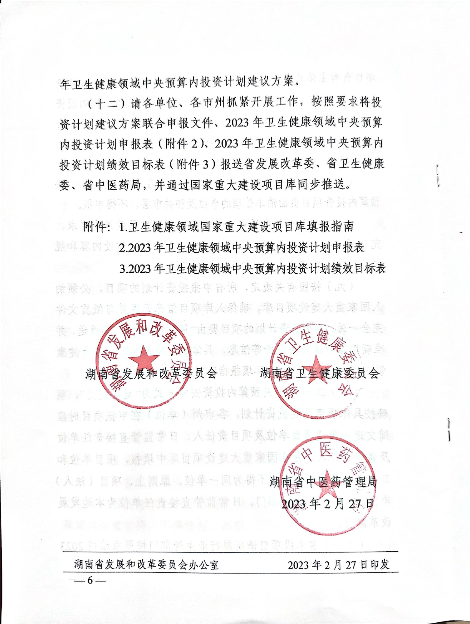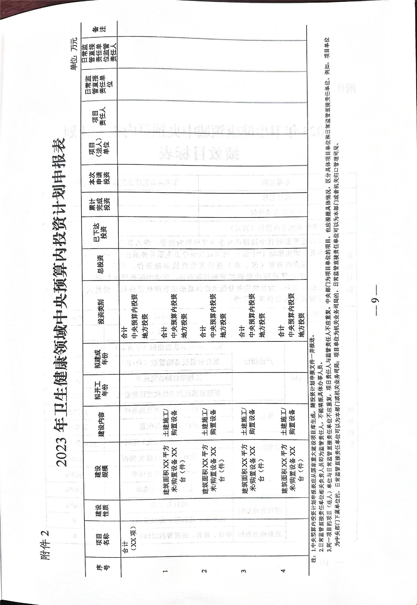 关于编报2023年卫生健康领域中央预算内投资计划建议方案的通知