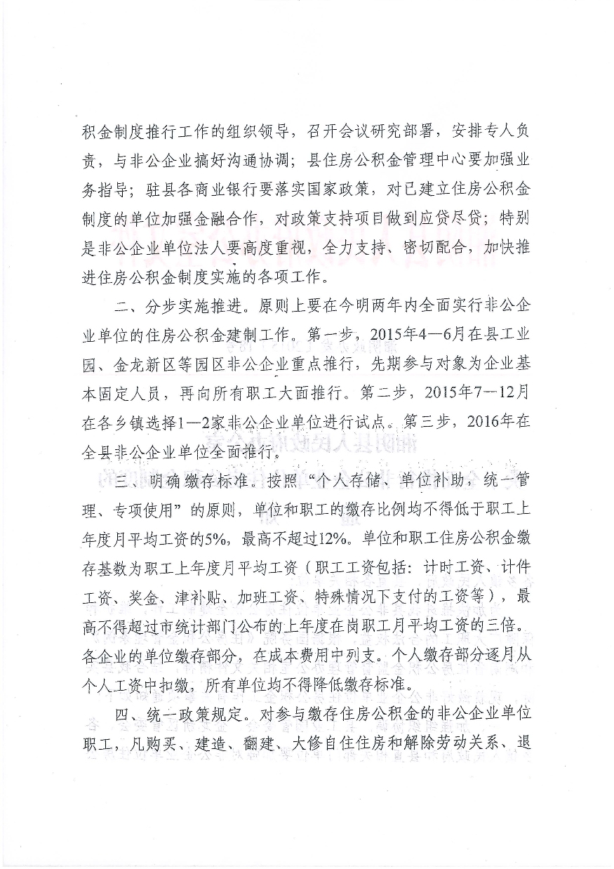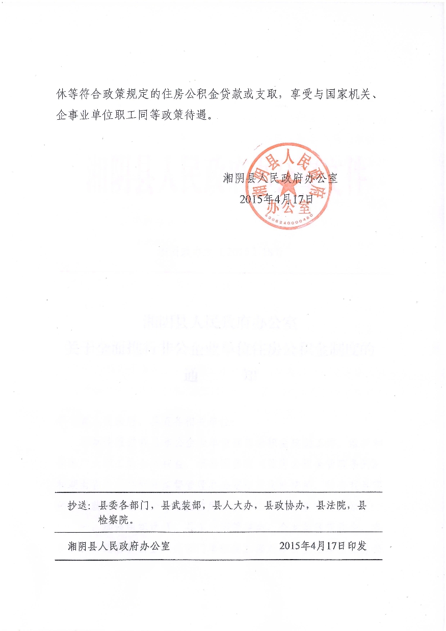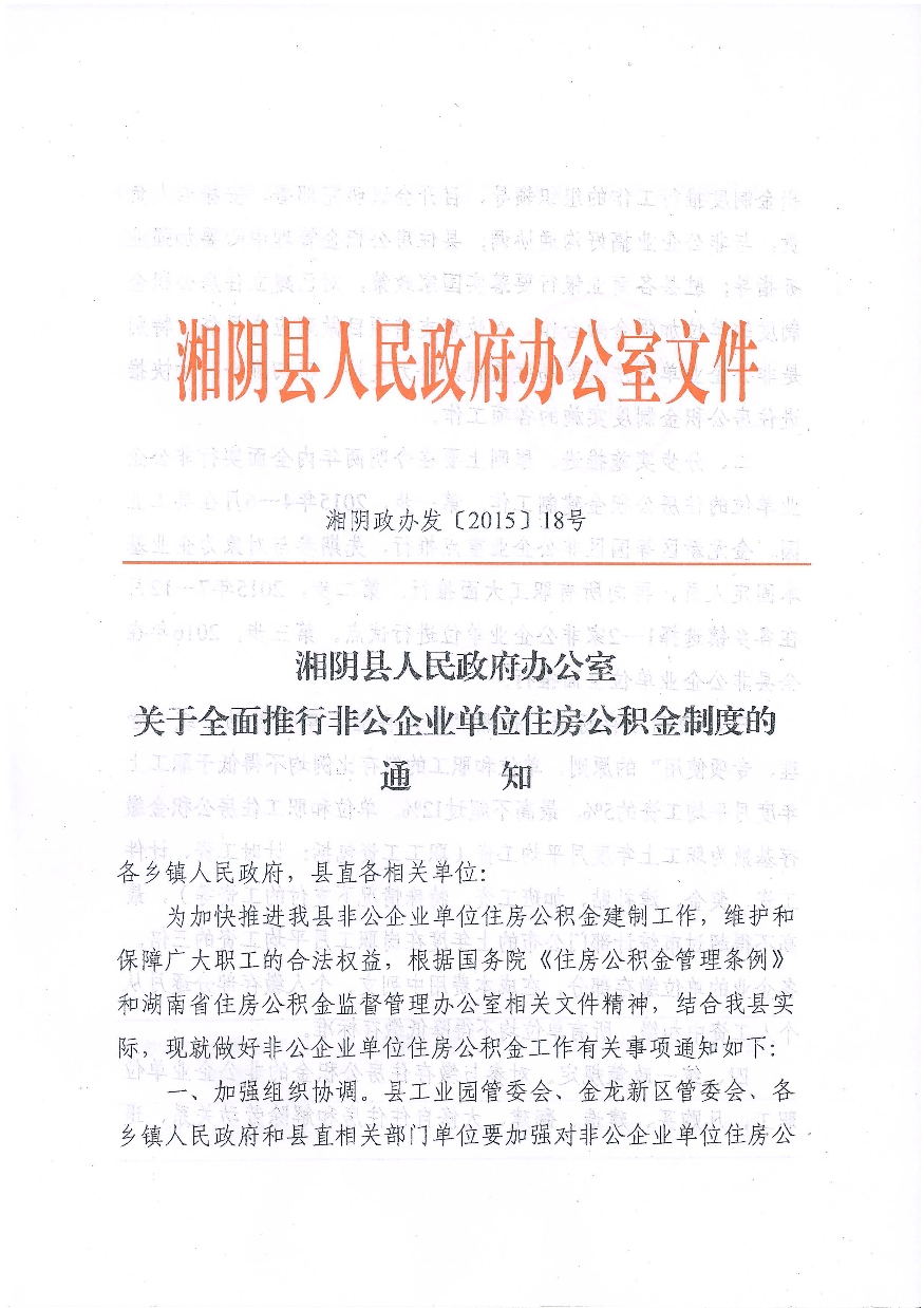 湘阴县人民政府办公室关于全面推行非公企业单位住房公积金制度的通知