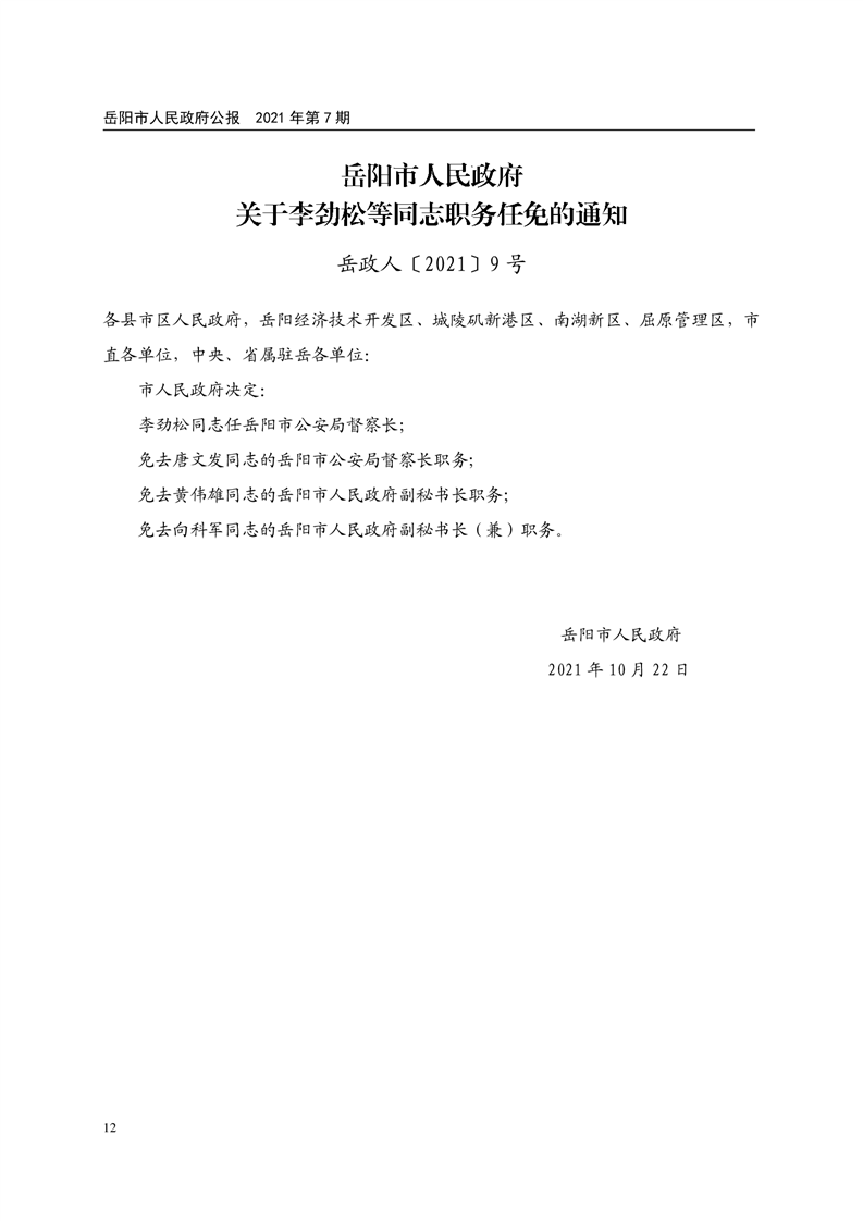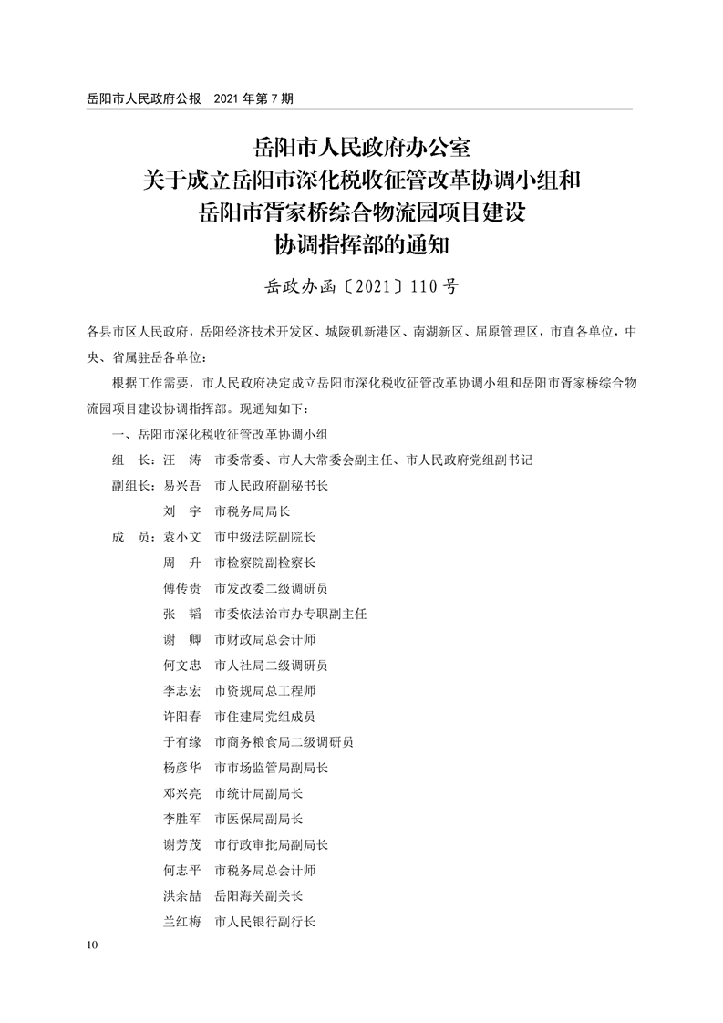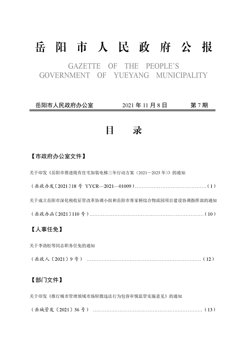 岳阳市人民政府公报2021年第七期