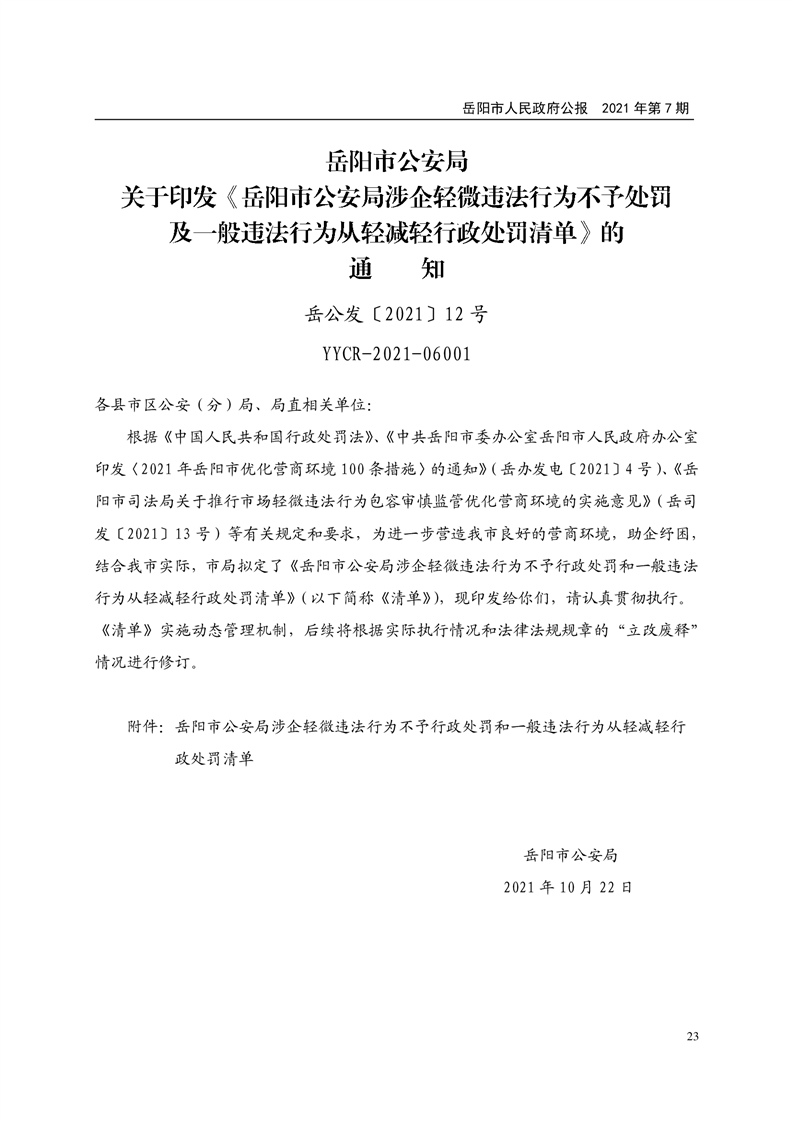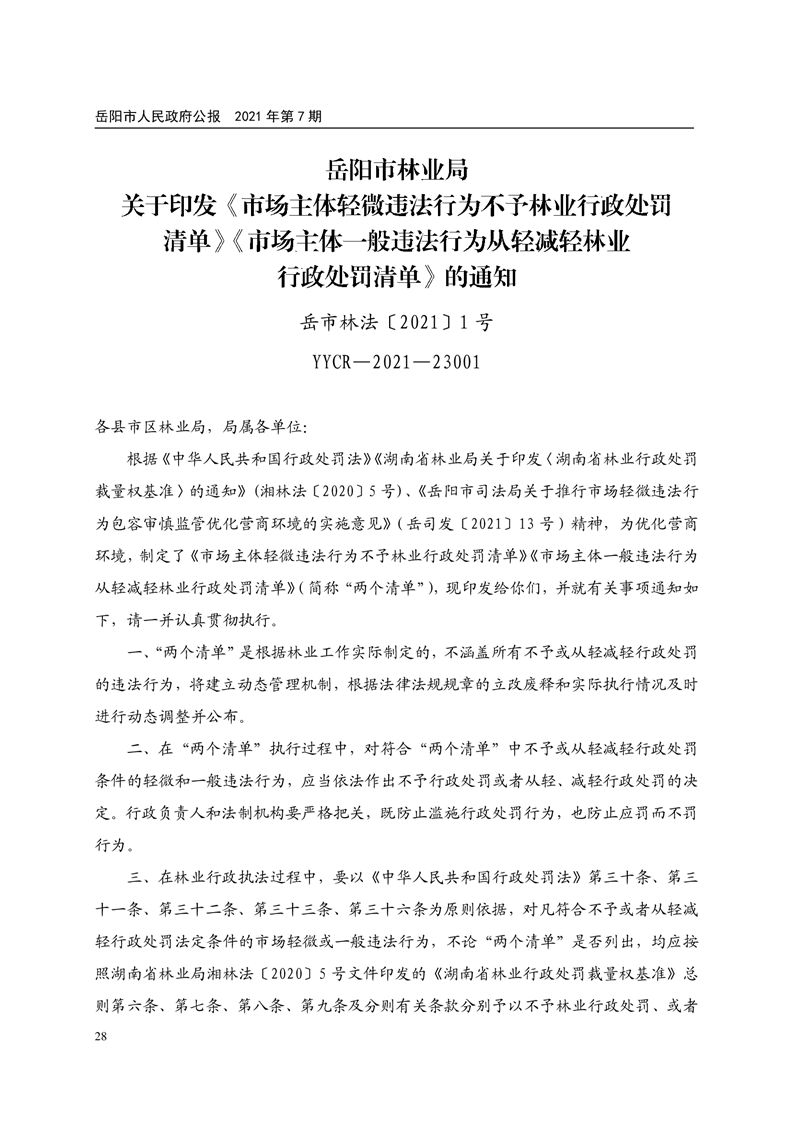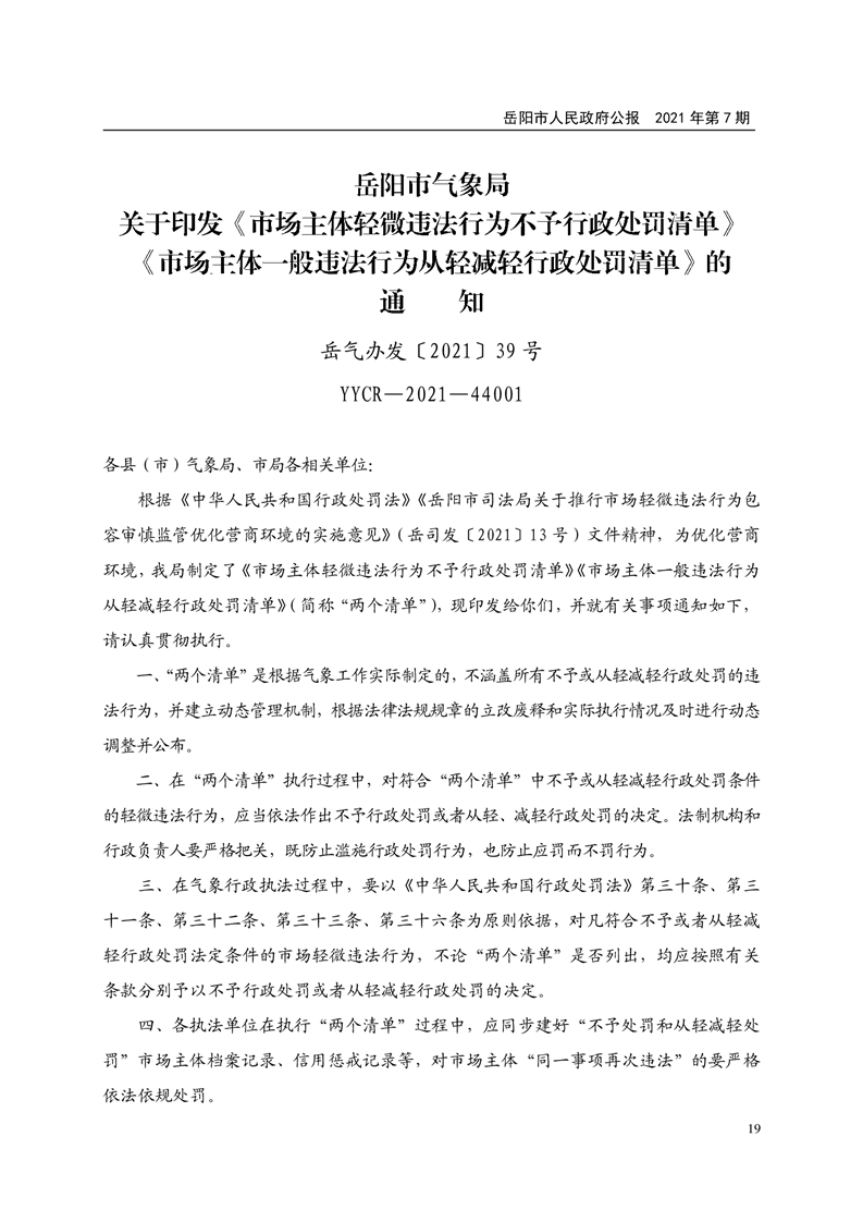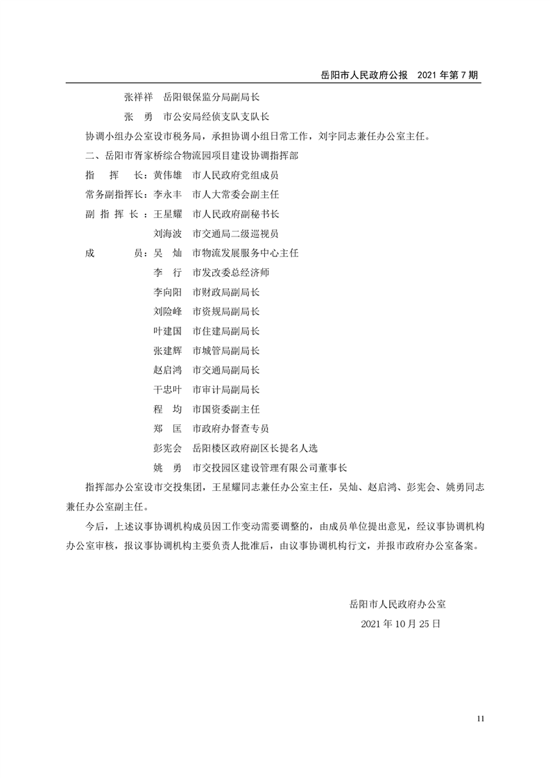 岳阳市人民政府公报2021年第七期