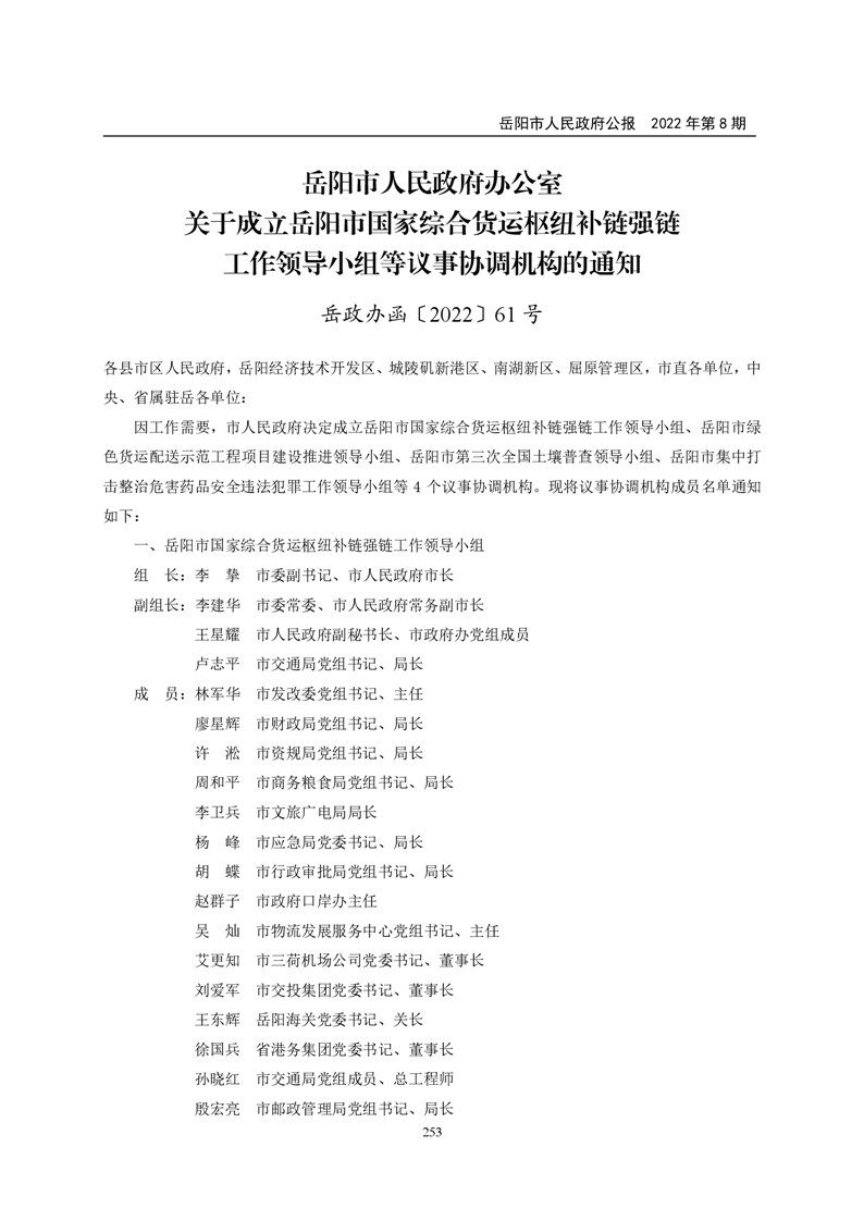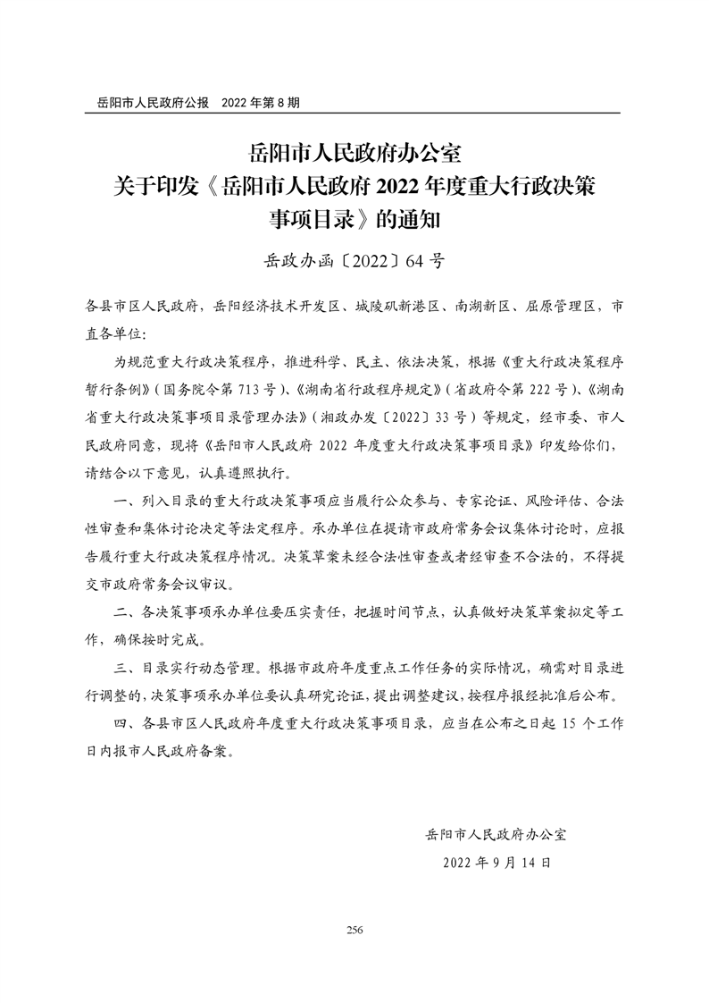 岳阳市人民政府公报2022年第8期