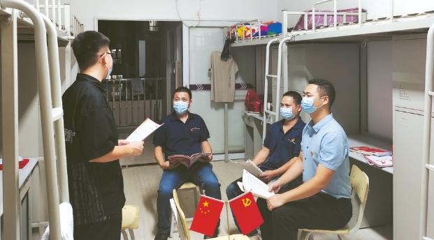 当前,新港区“宿舍微党课”正持续开展中,在不同企业中还分别开展了“夜间课堂”“车间夜校”“深夜茶会”等活动,覆盖党员近千名,开展课程近百场,评选优秀“宣讲员”、优秀“课代表”数十名,让党史学习教育在时间上、地点上全覆盖,让所有非公企业党员“不掉队”“不漏学”。