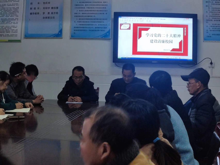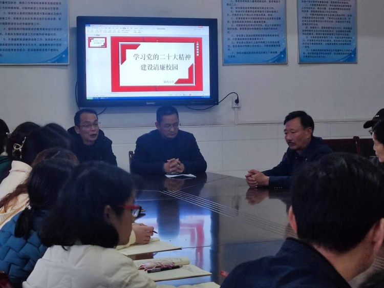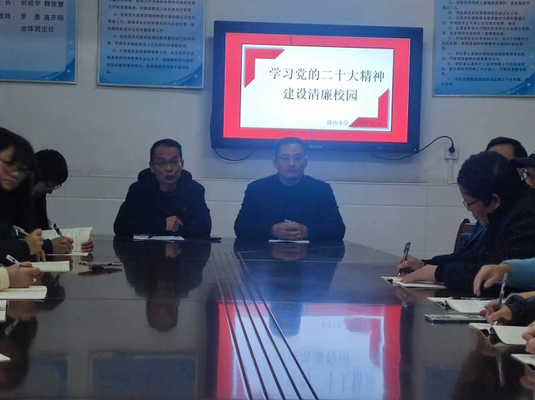 为更好地学习领悟党的二十大精神,隆西小学召开主题为“学习党的二十大精神,建设清廉学校”会议。