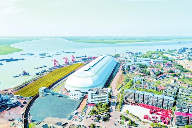 城陵矶老港提质改造项目总投资约4.1亿元,整体改造5个泊位及配套陆域设施。其中,3个泊位被拆除后对岸坡复绿,对2个5000吨级外贸泊位进行环保提质改造。设计50-100米纵深绿化,长470米、宽110米的“胶囊”型散货封闭仓库,已于2020年4月25日正式投产,是长江内河港口改造的首例。