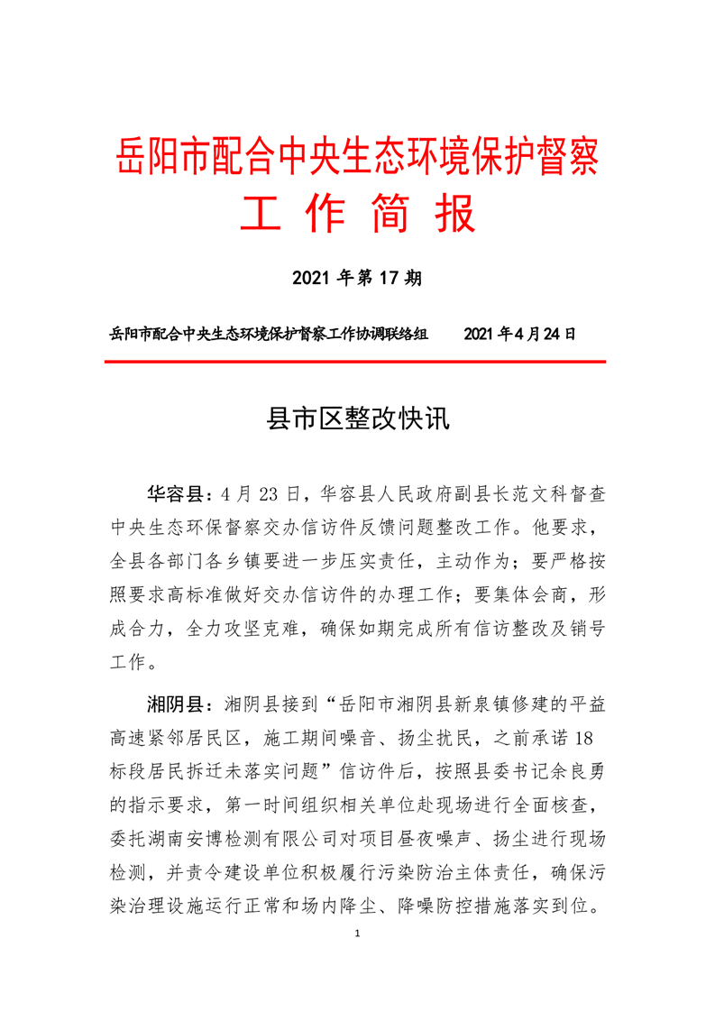 岳阳市配合中央生态环境保护督察工作简报第17期
