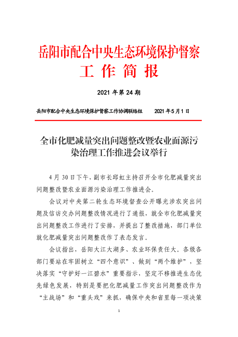 岳阳市配合中央生态环境保护督察工作简报第24期