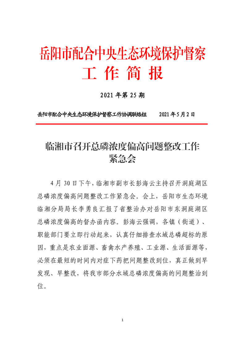 岳阳市配合中央生态环境保护督察工作简报第25期