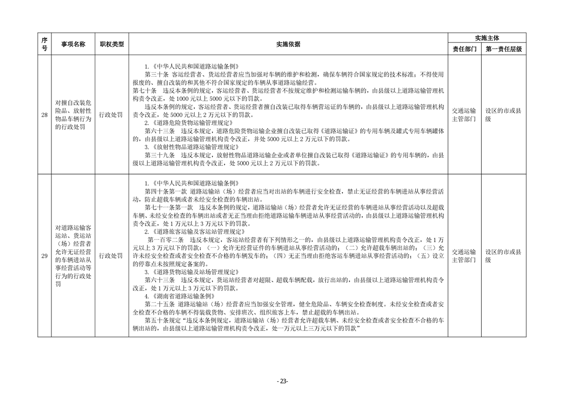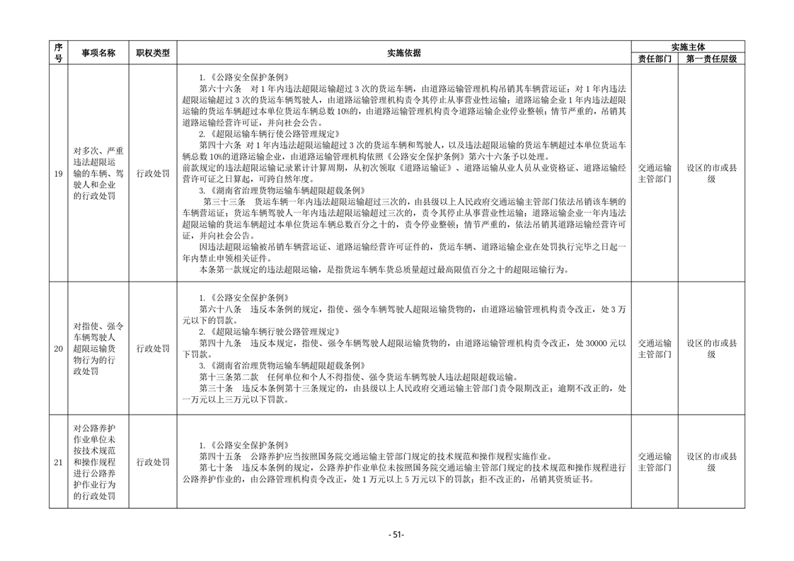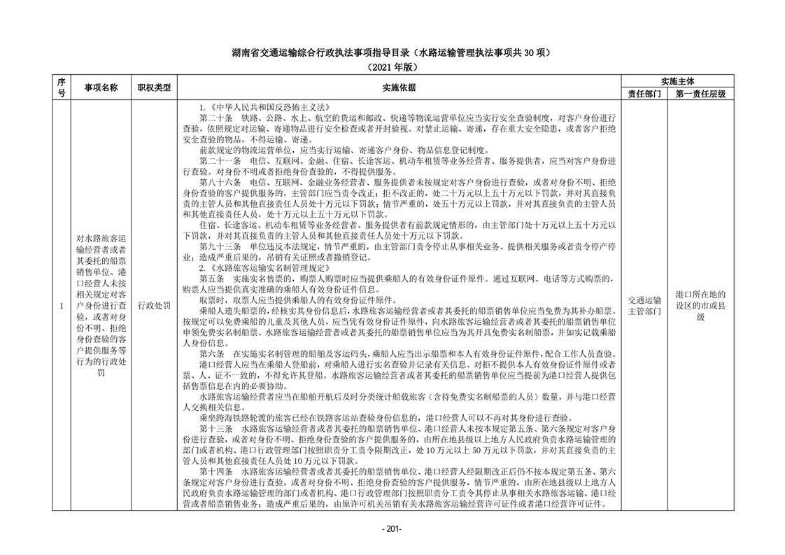 湖南省交通运输综合行政执法事项指导目录(2021年版)