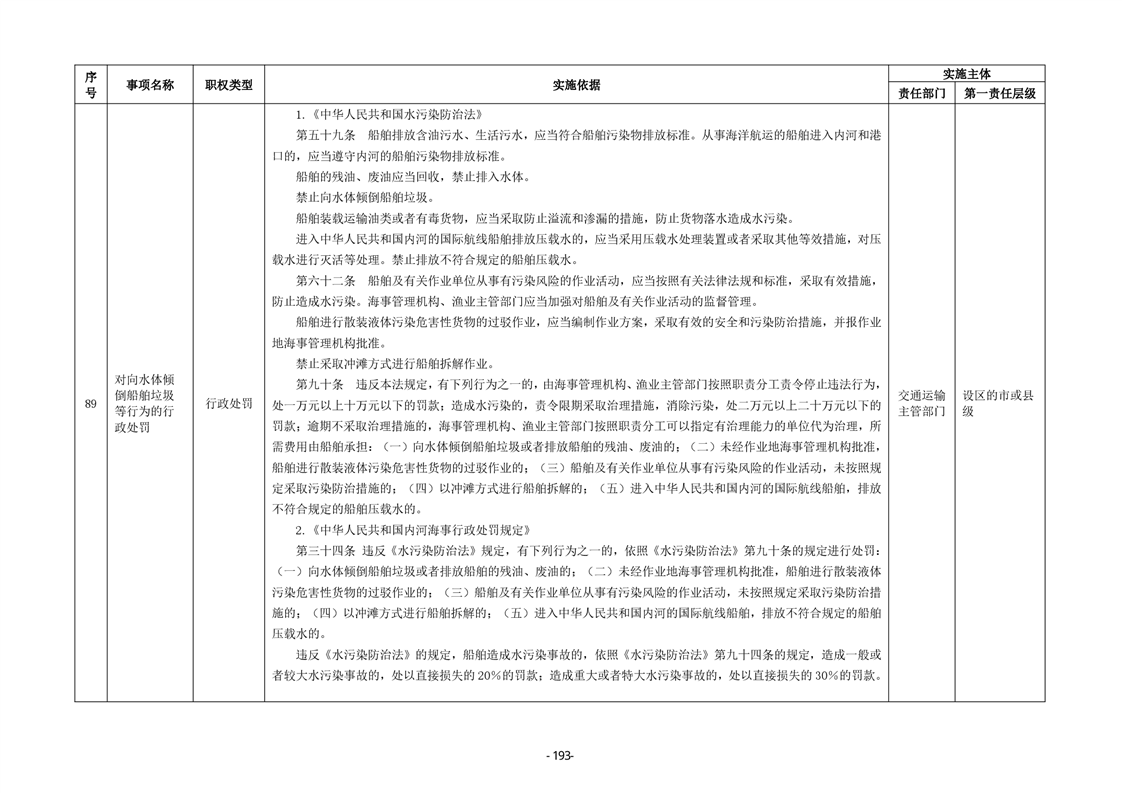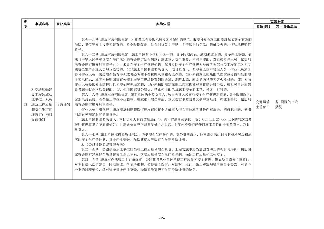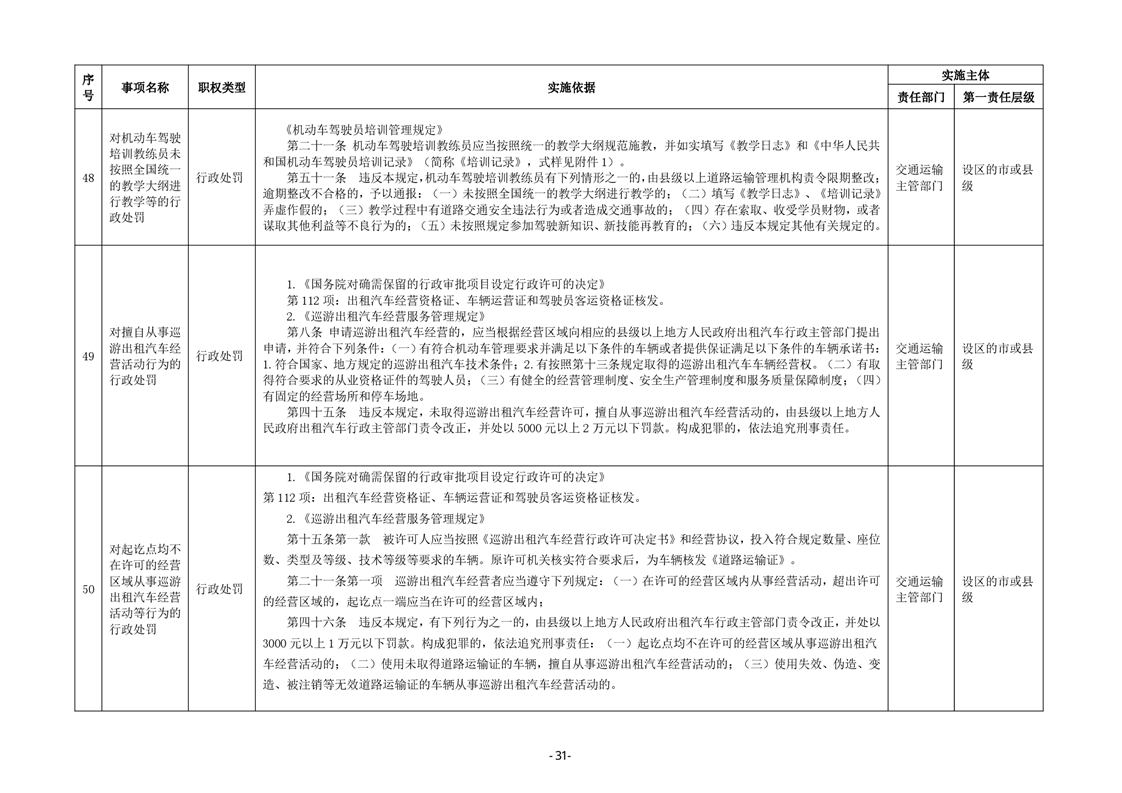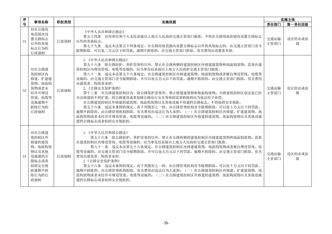 湖南省交通运输综合行政执法事项指导目录(2021年版)