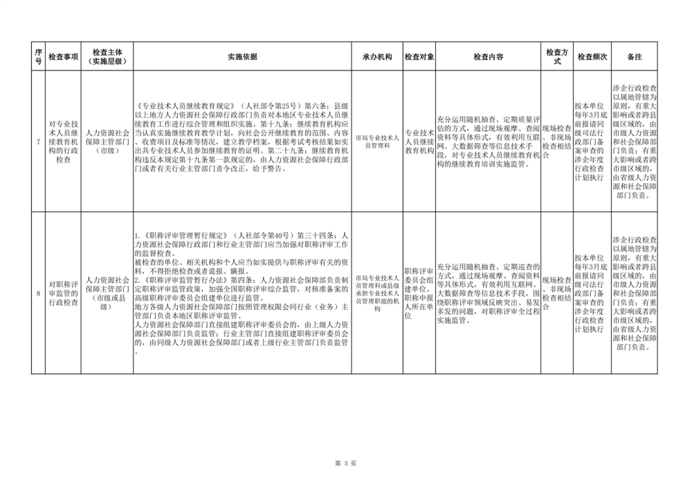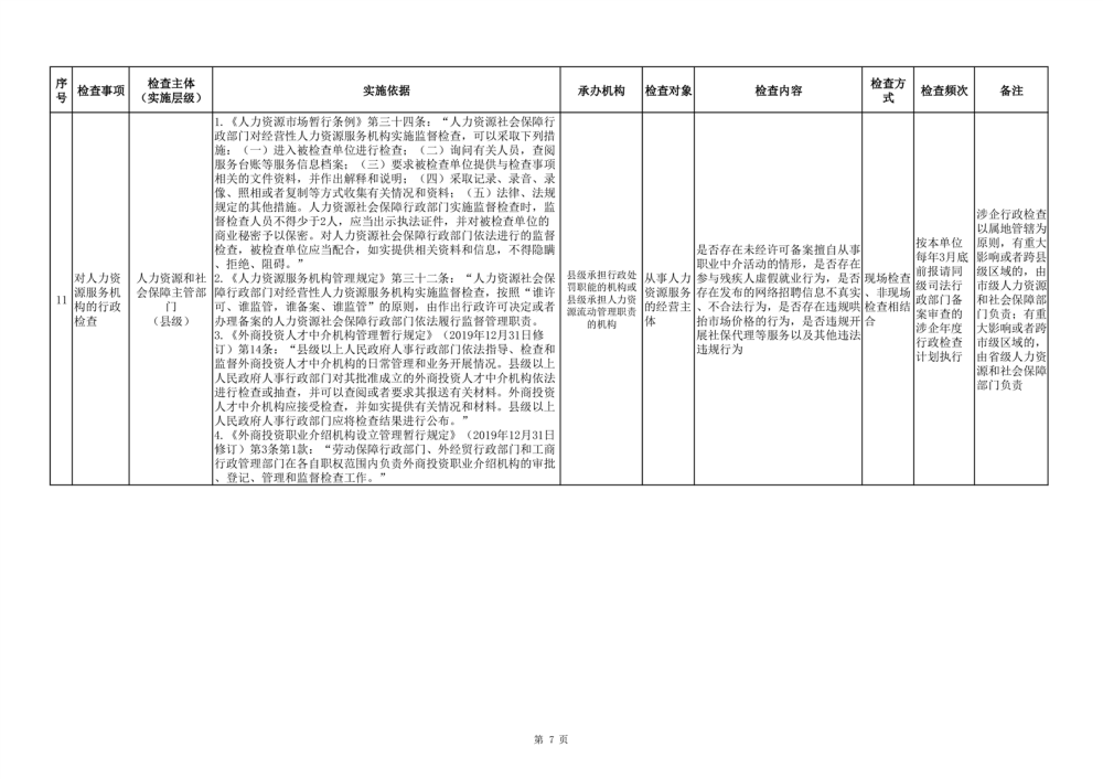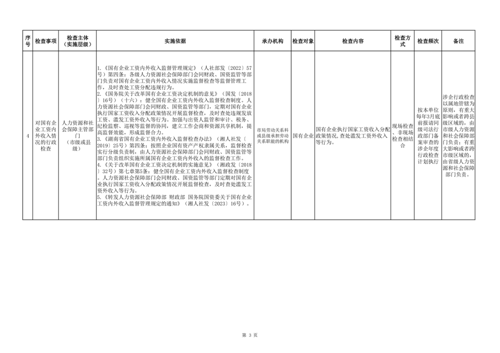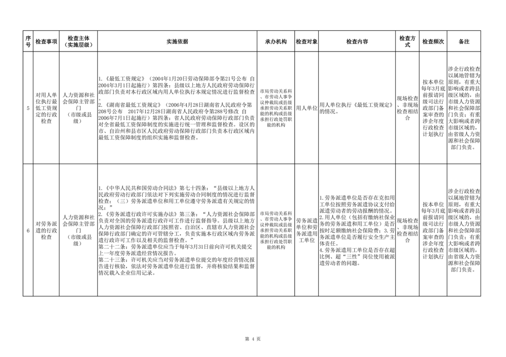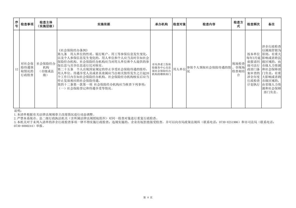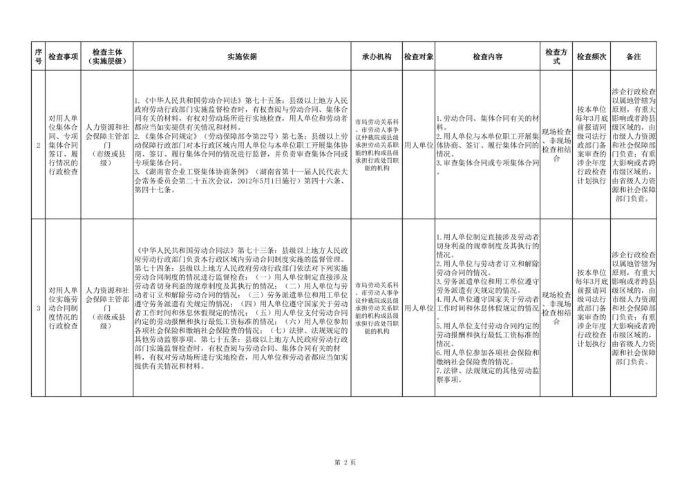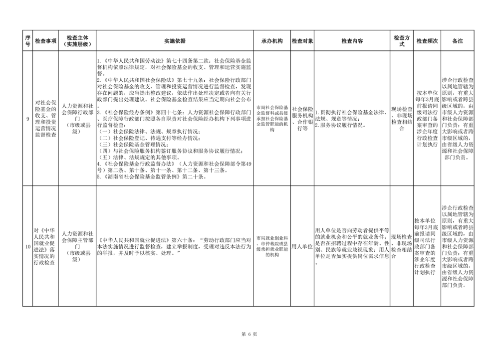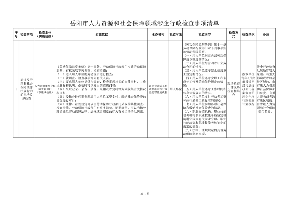 岳阳市人力资源和社会保障领域涉企行政检查事项清单
