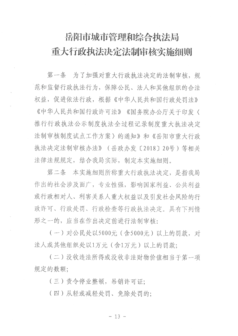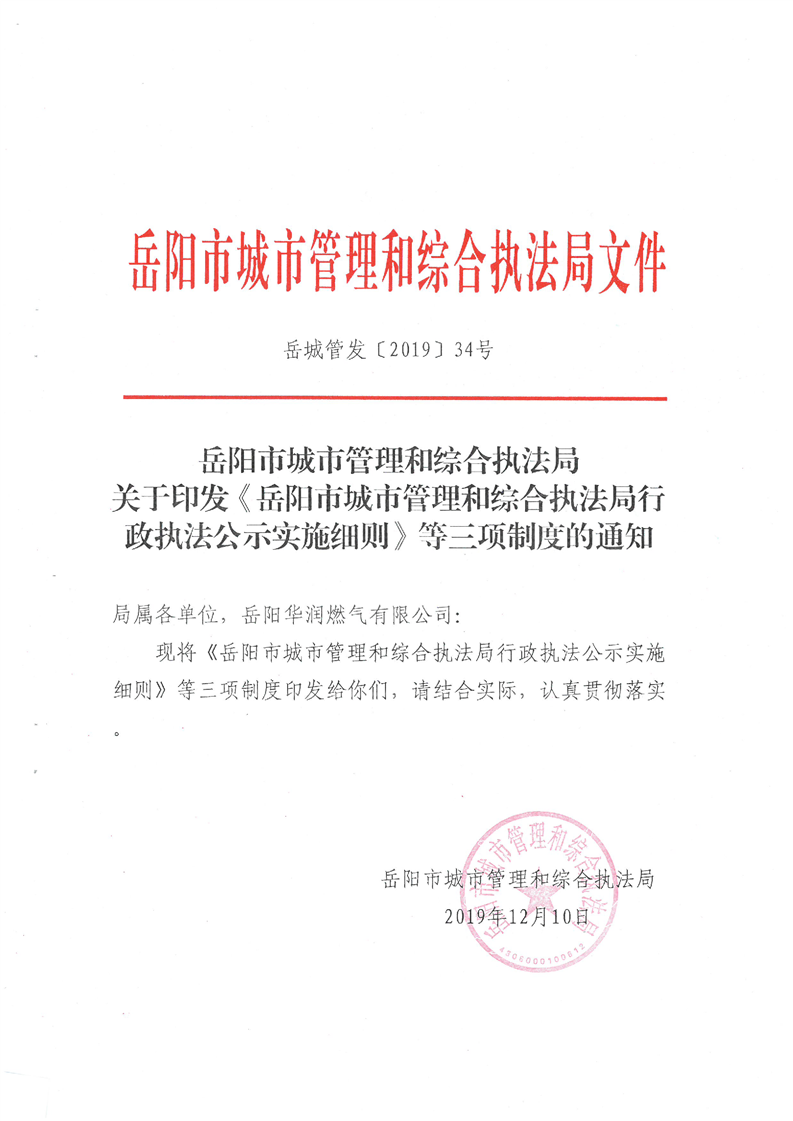 关于印发《岳阳市城市管理和综合执法局行政执法公示实施细则》等三项制度的通知