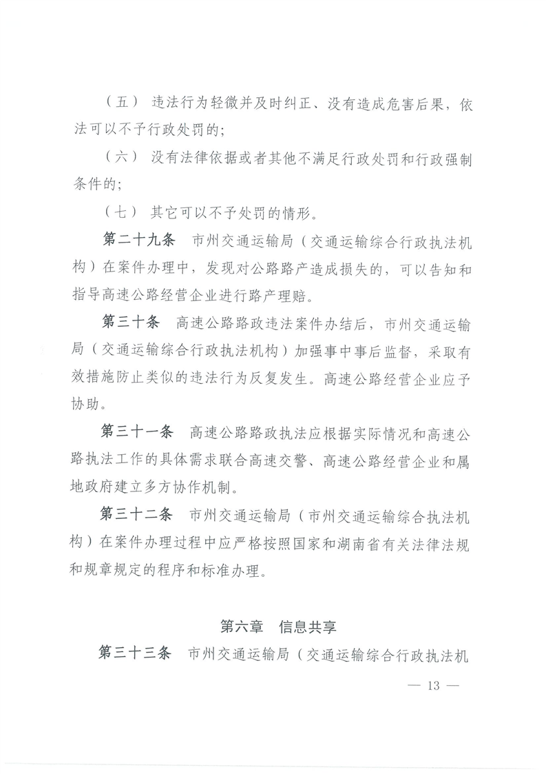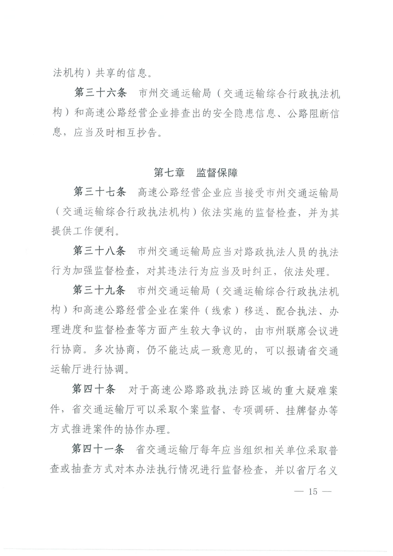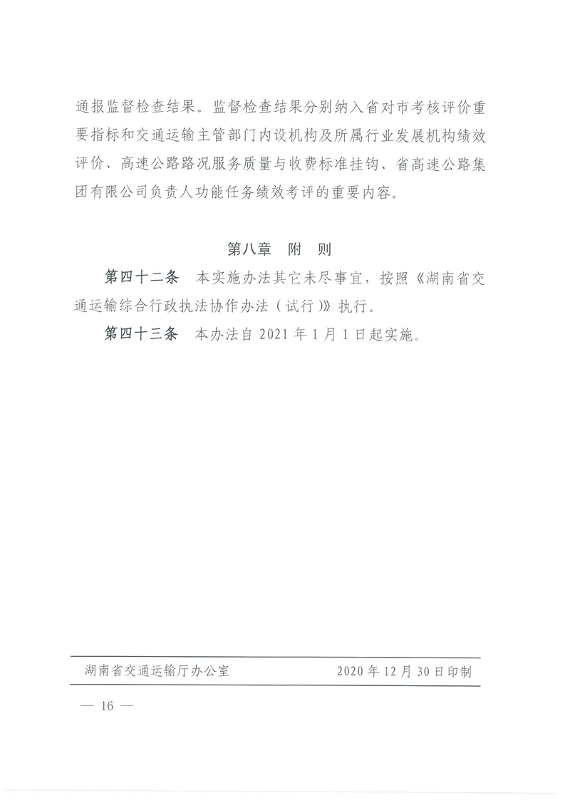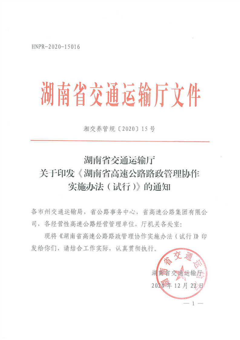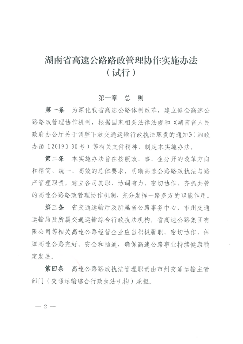 关于印发《湖南省高速公路路政管理协作实施办法(试行)》的通知