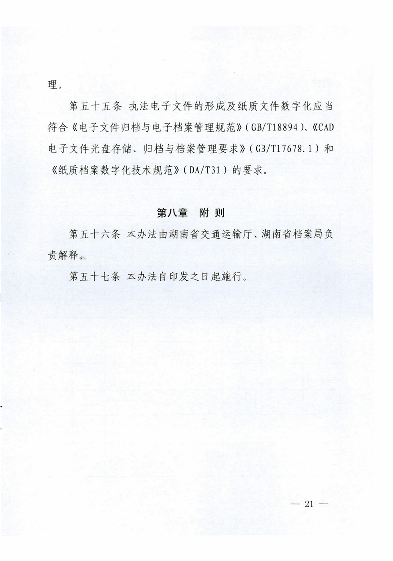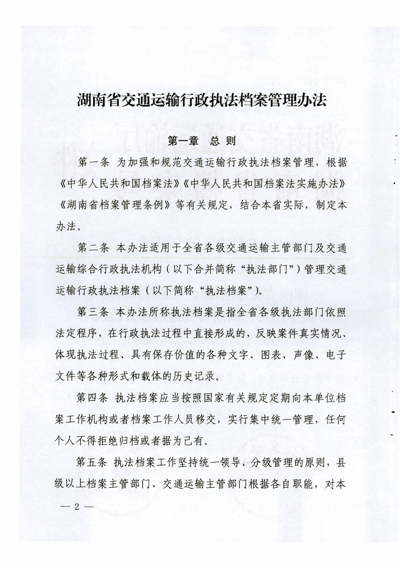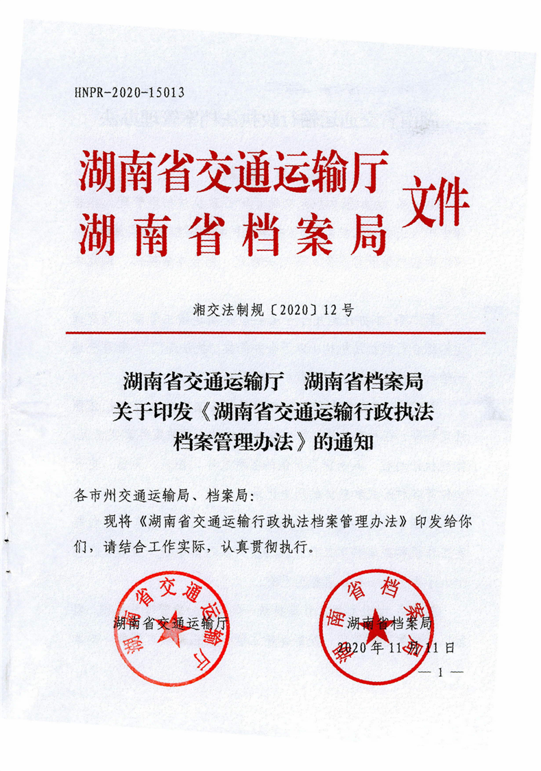 关于印发《湖南省交通运输行政执法档案管理办法》的通知