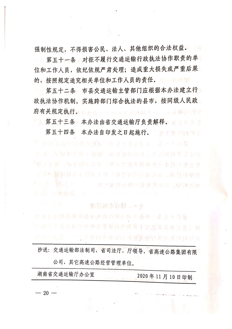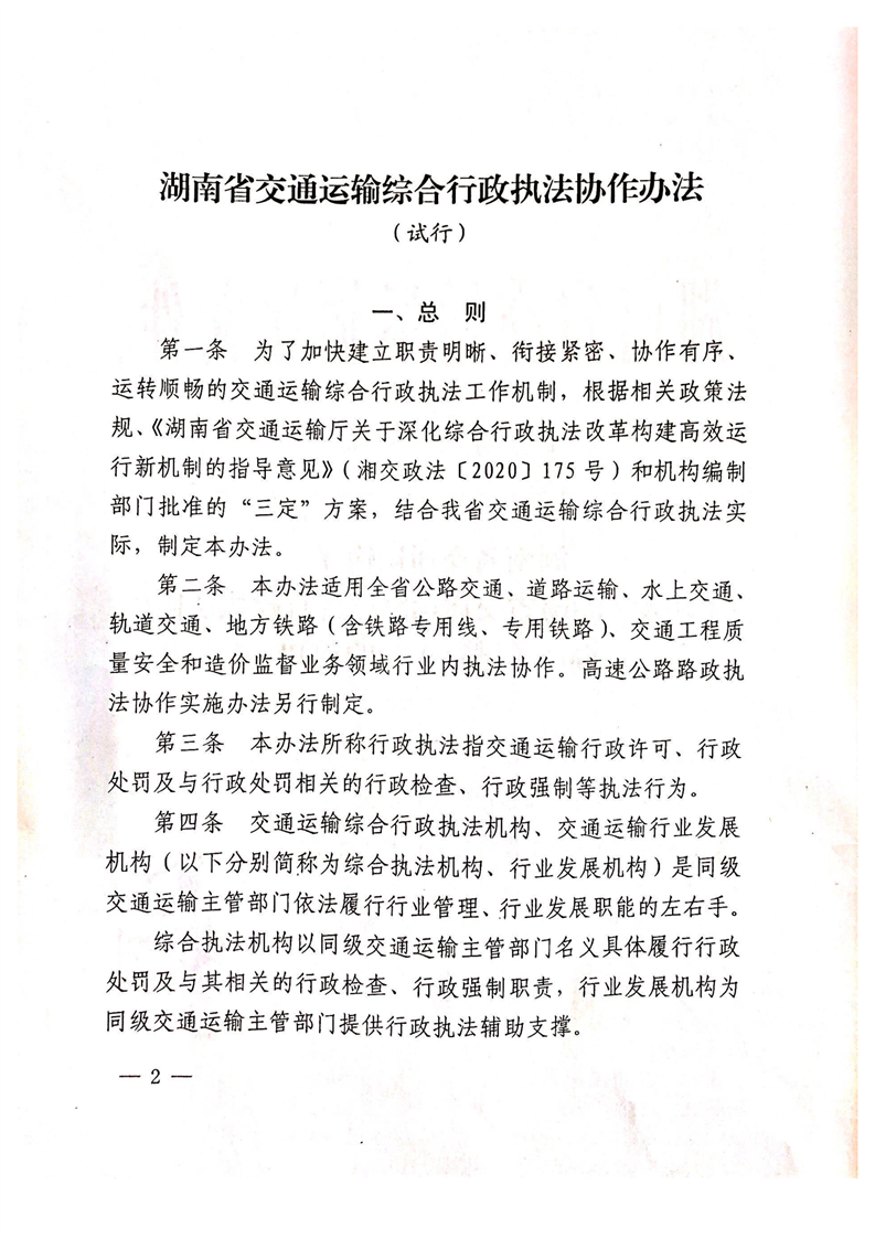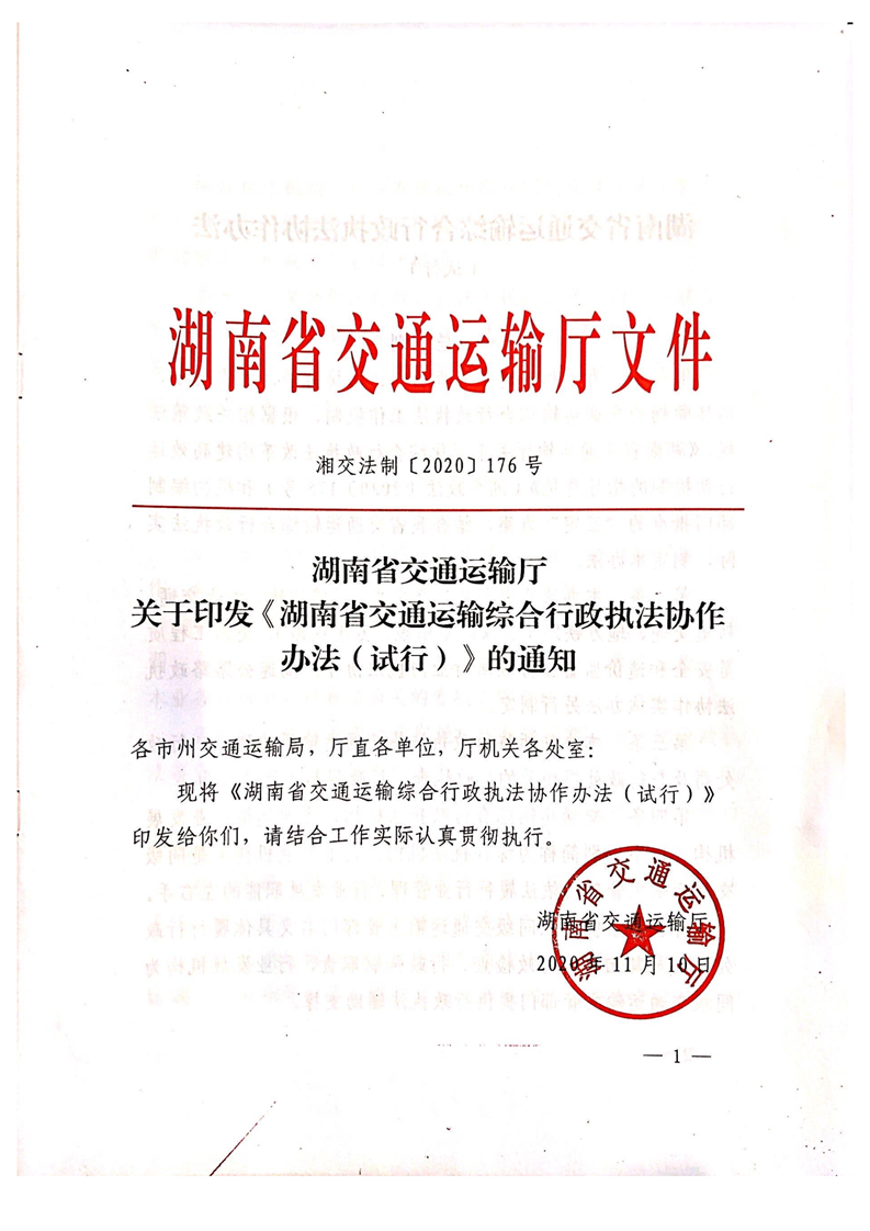 关于印发《湖南省交通运输综合行政执法协作办法(试行)》的通知