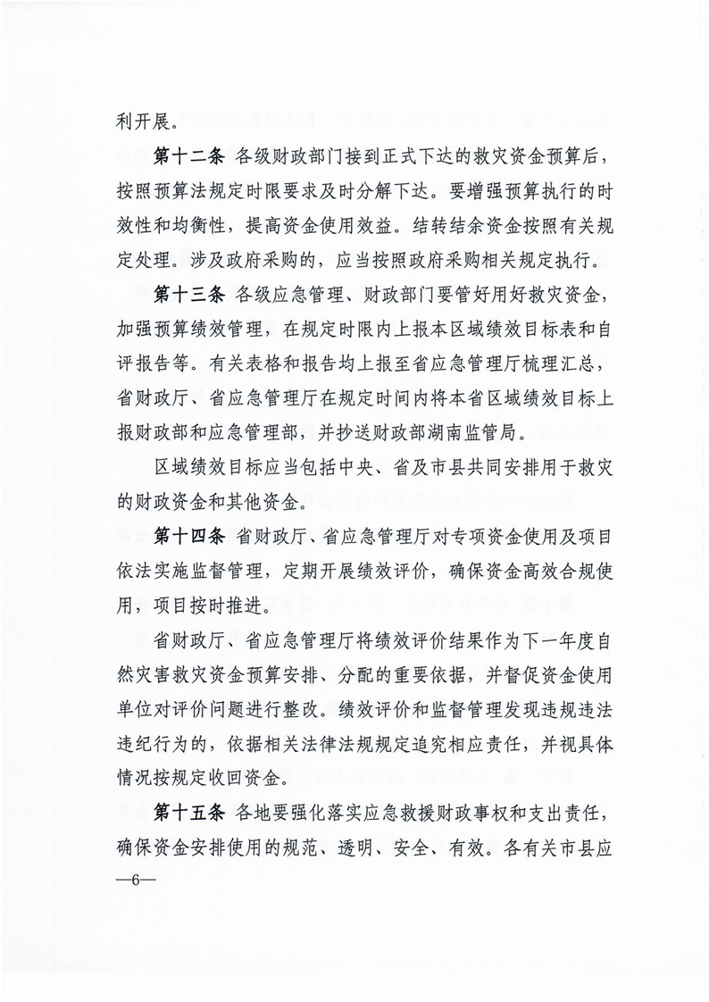 湖南省自然灾害救灾资金管理实施细则