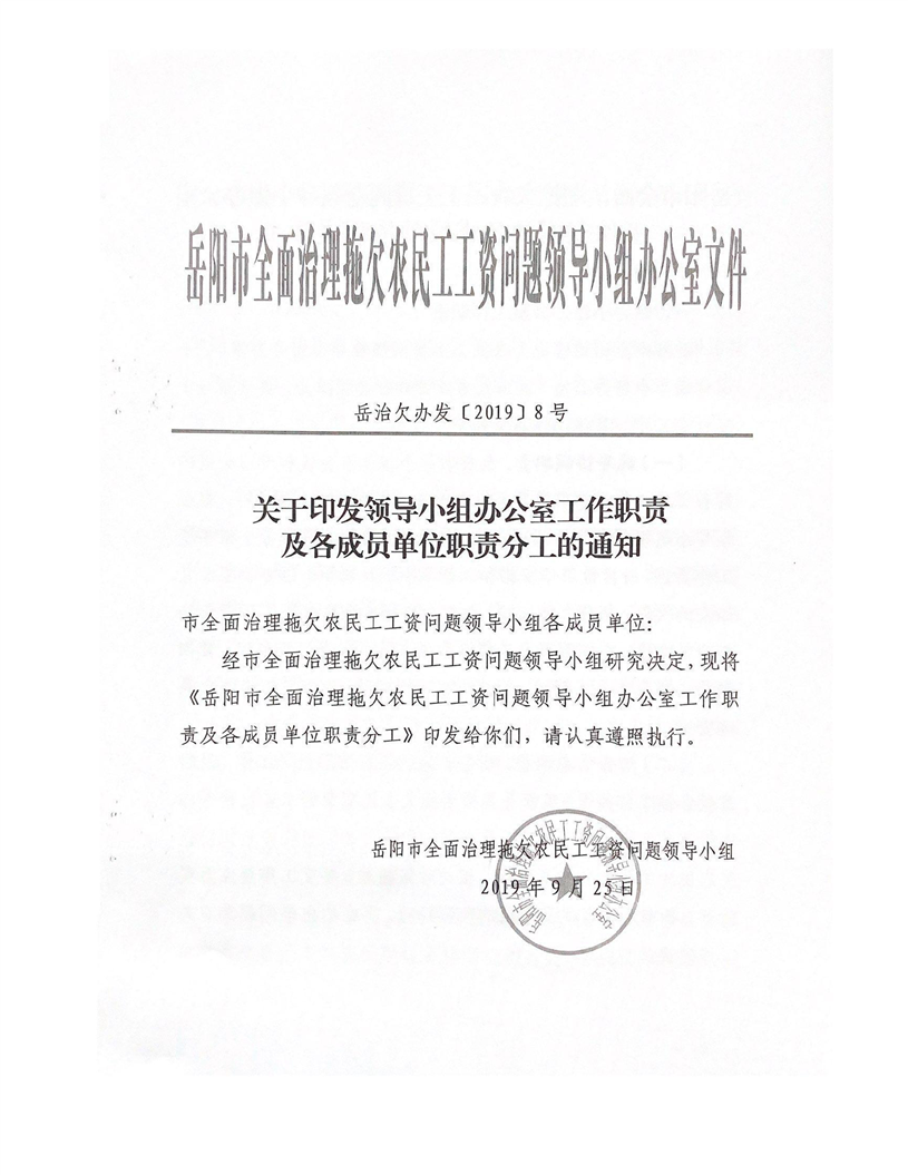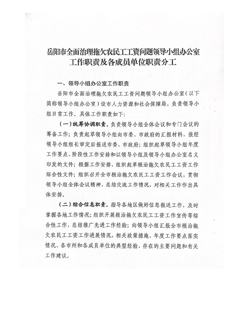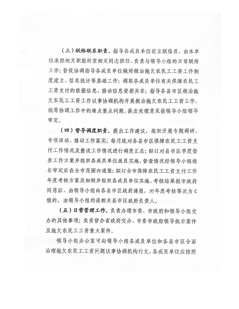 关于印发领导小组办公室工作职责及各成员单位职责分工的通知