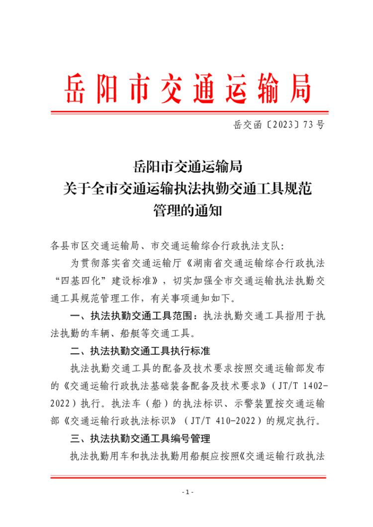 关于全市交通运输执法执勤交通工具规范管理的通知