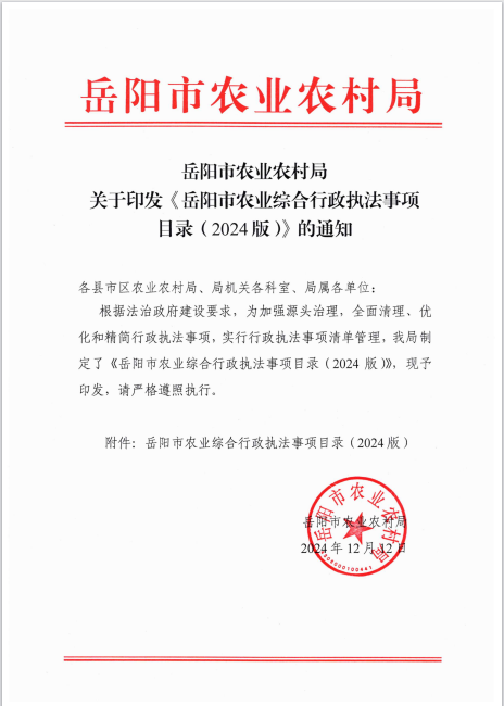 岳阳市农业综合行政执法事项目录(2024版)