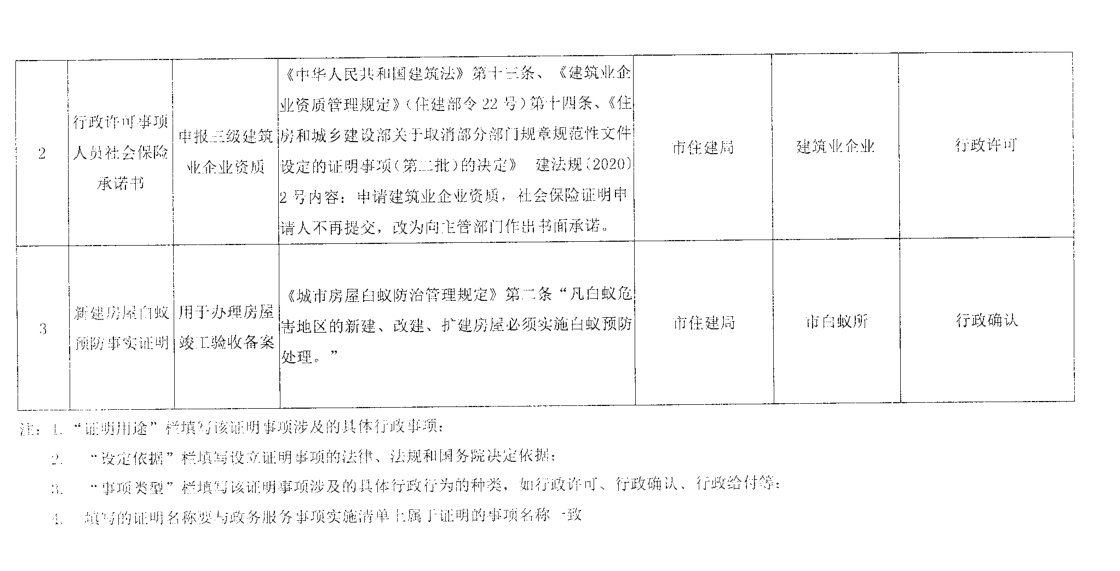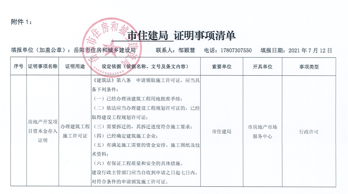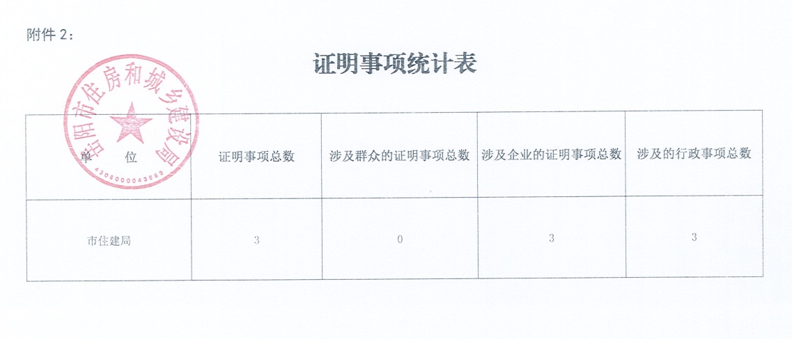 岳阳市住房和城乡建设局证明事项清单