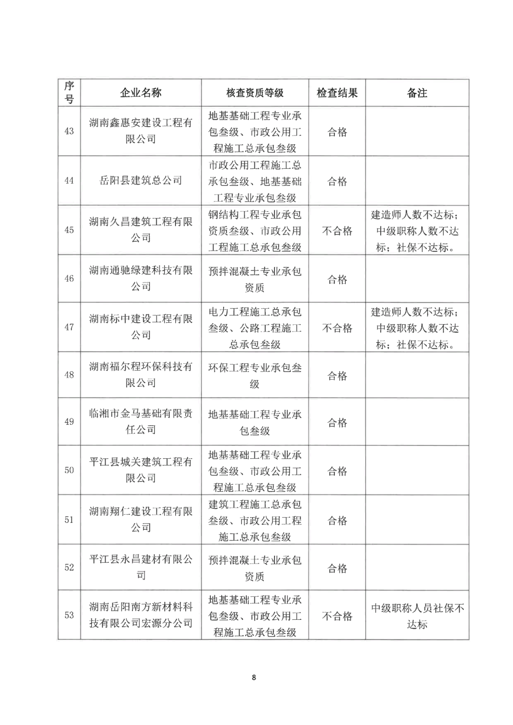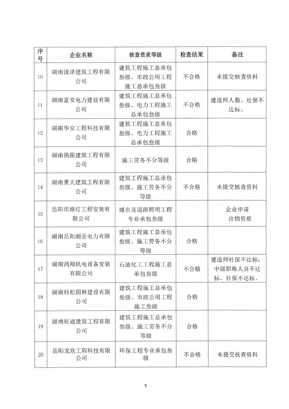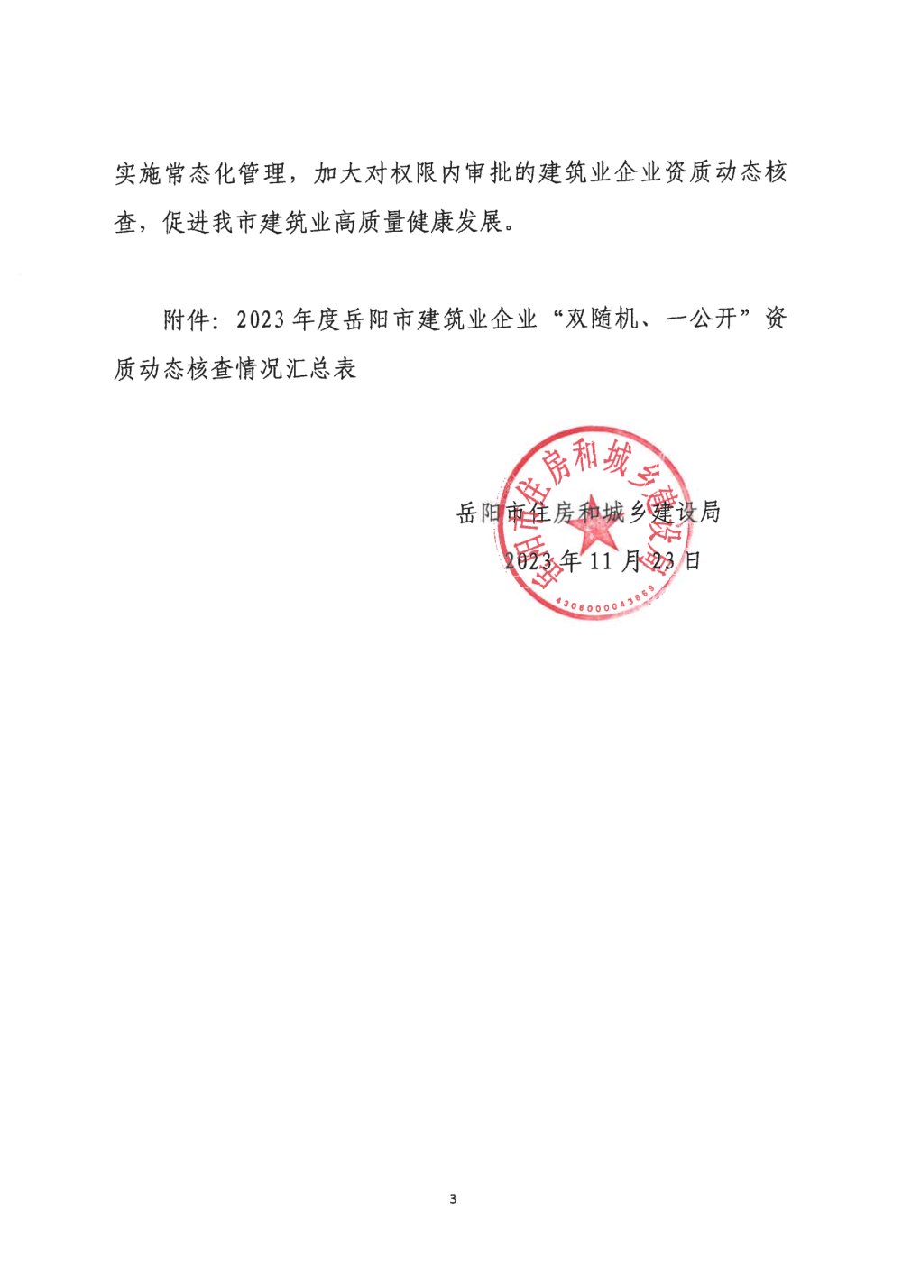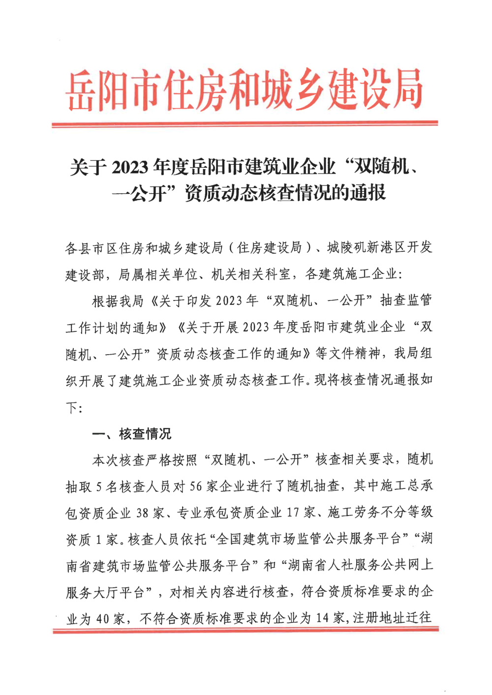 关于2023年度岳阳市建筑业企业“双随机、一公开”资质动态核查情况的通报