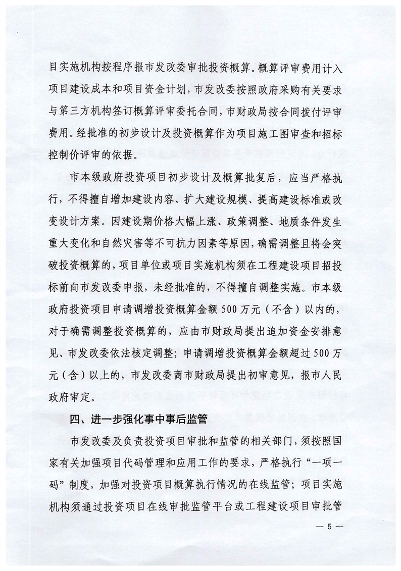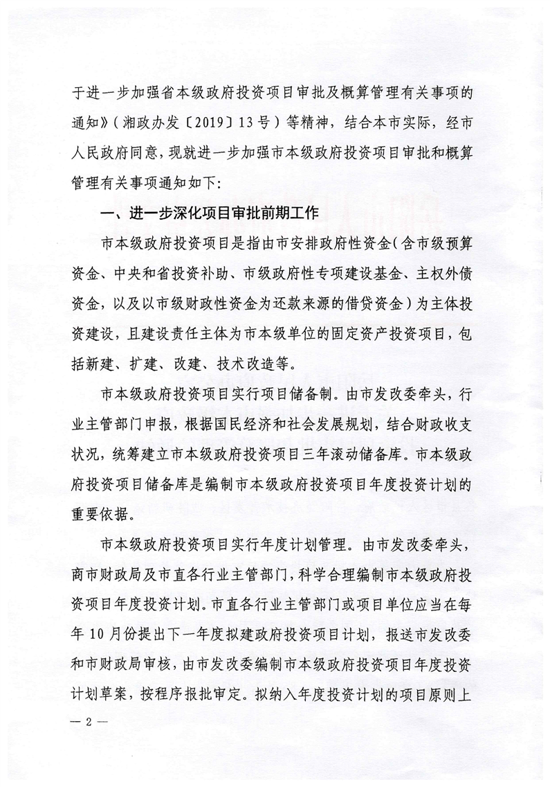 岳阳市人民政府办公室《关于进一步加强市本级政府投资项目审批和概算管理》的通知