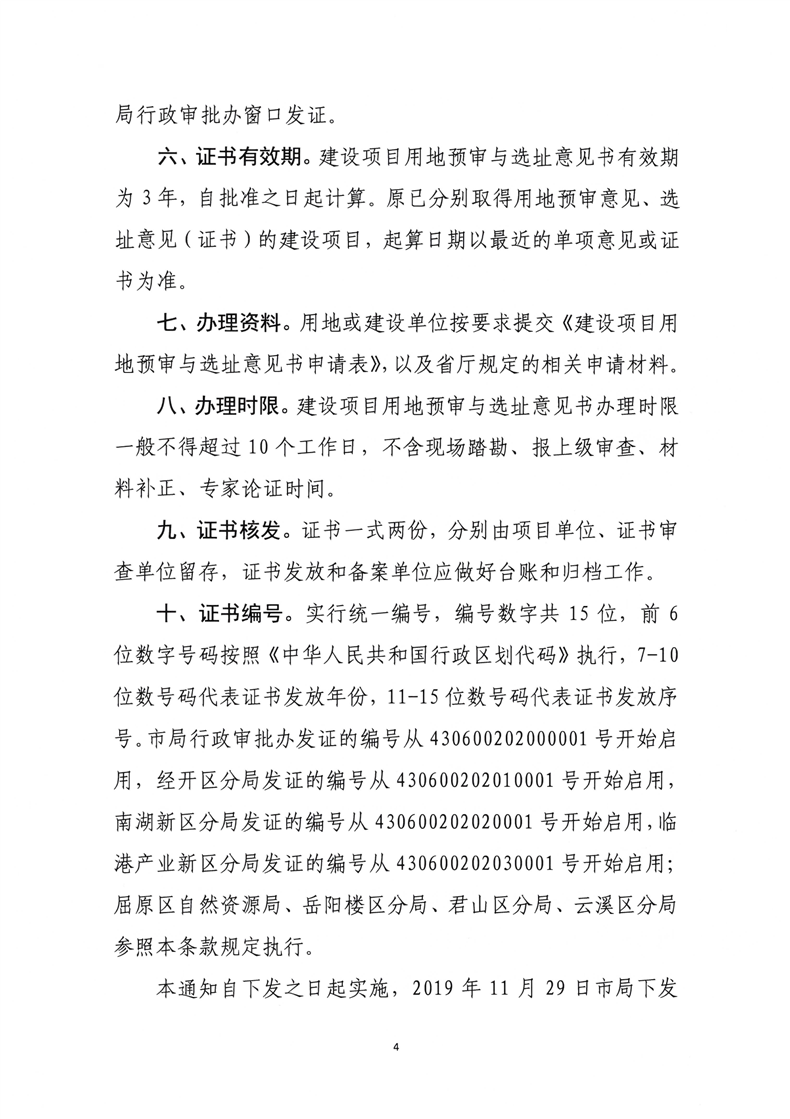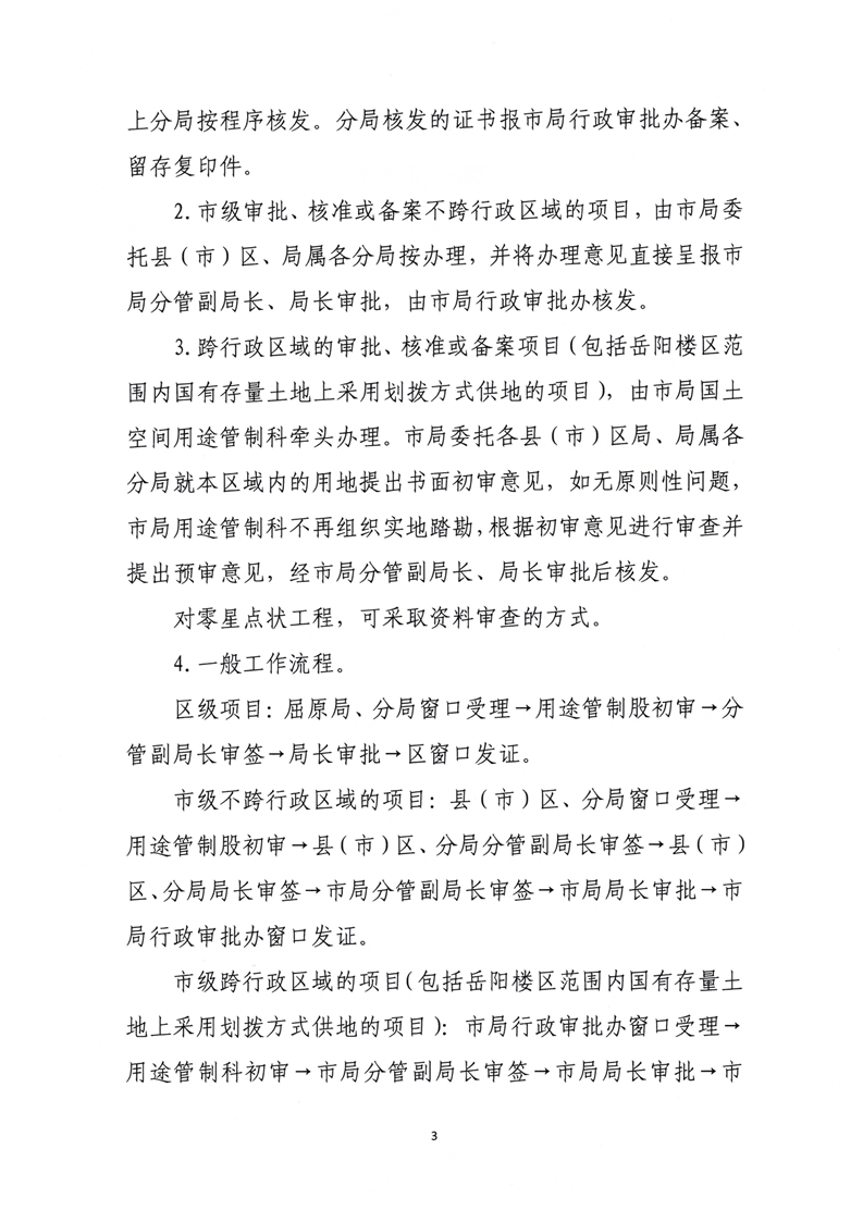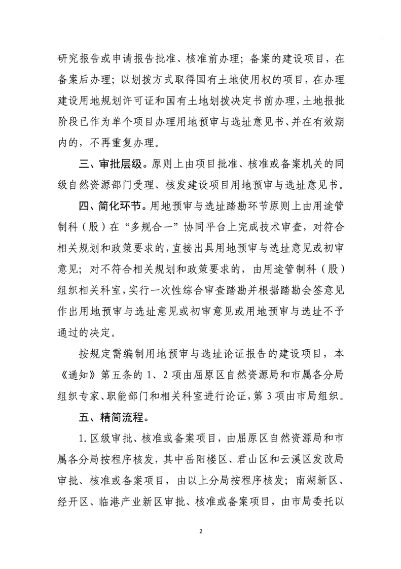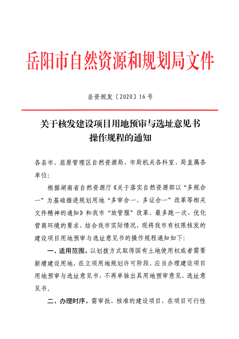 岳阳市自然资源和规划局《关于核发建设项目用地预审与选址意见书操作规程》的通知