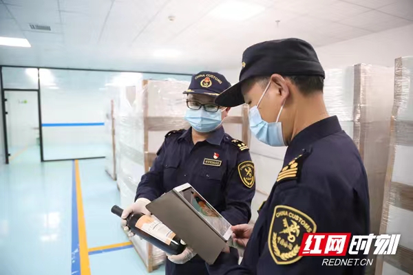 近日,岳阳观盛投资发展有限公司一批进口葡萄酒在清关时,得到查验知识产权商标的指令。长沙海关所属岳阳海关人员利用移动查验单兵集成智能识别应用技术,迅速对该批红酒进行查验并放行。这是岳阳海关在湖南首次对岳阳自贸片区企业应用“移动查验单兵集成知识产权商标智能识别应用”创新成果,将信息化技术运用到监管领域为企业降本减负。