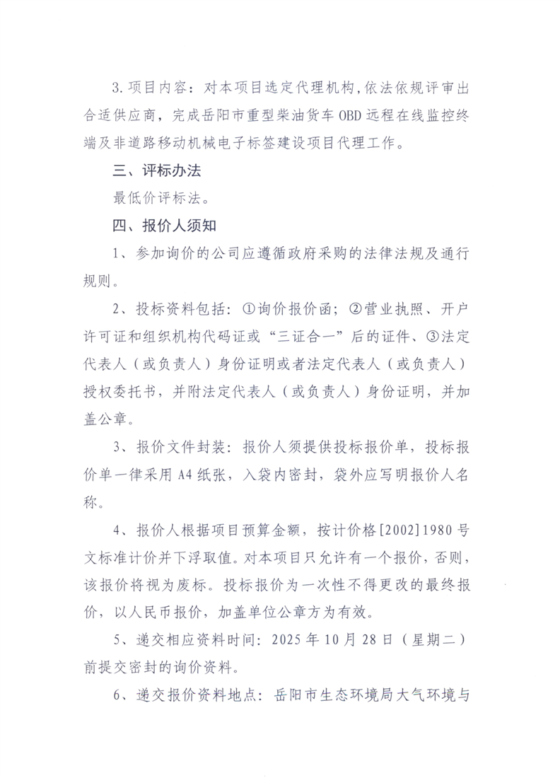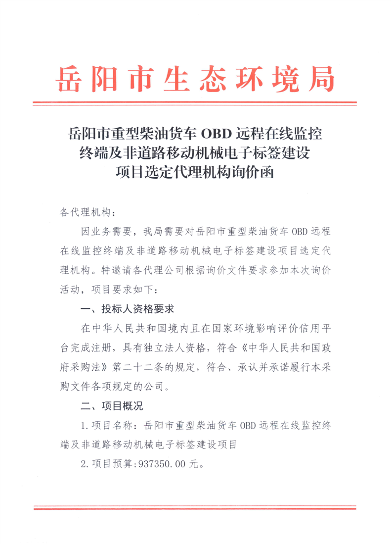 岳阳市重型柴油货车OBD远程在线监控终端及非道路移动机械电子标签选定代理公司询价函