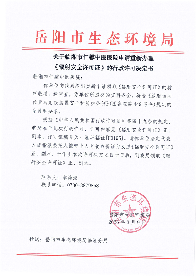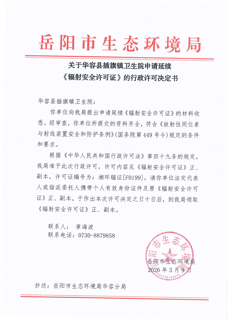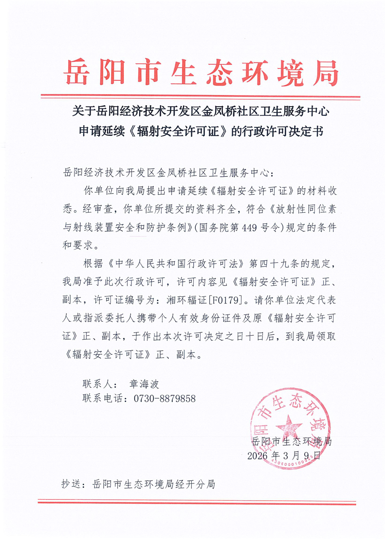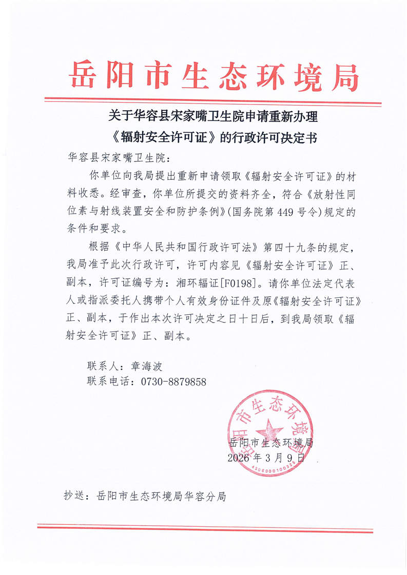 关于3月9日项目《辐射安全许可证》的行政许可决定