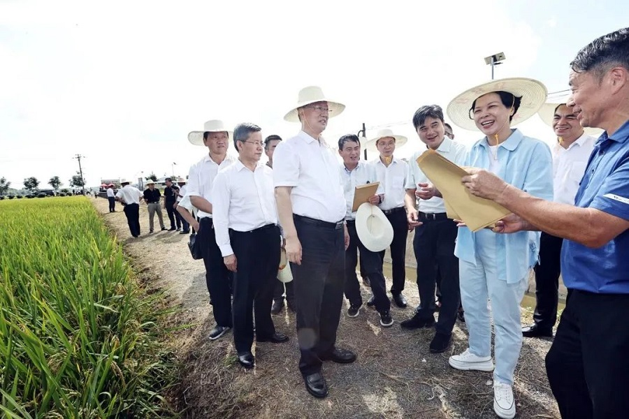 9月17日下午,省委副书记、省长毛伟明在株洲市渌口区龙门镇低镉水稻试验示范基地调研。