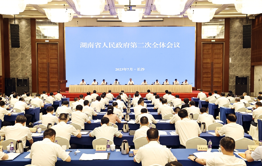 7月18日下午,省政府召开第二次全体会议,总结上半年经济工作,分析上半年形势,部署下半年经济工作重点。省委副书记、省长毛伟明强调,要深入贯彻习近平总书记关于湖南工作的重要讲话和指示批示精神,按照省委工作部署,锚定“三高四新”美好蓝图,把主题教育与中心工作结合起来,打好打赢“发展六仗”,努力完成全年目标任务。