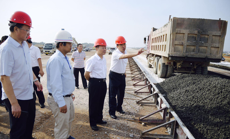 9月25日上午,市委书记、市人大常委会主任胡忠雄深入三荷机场项目现场,调研建设与运营准备工作。他强调,时刻保持“一万年太久、只争朝夕”的紧迫感,高起点定位,高标准建设,高效能管理,创新性运营,确保完成目标任务,着力打造“双港驱动”(水港、空港)的强劲发展引擎。市委常委、市委秘书长谈正红,副市长杨昆,经开区工委书记文春方和广东龙浩集团高层参加。