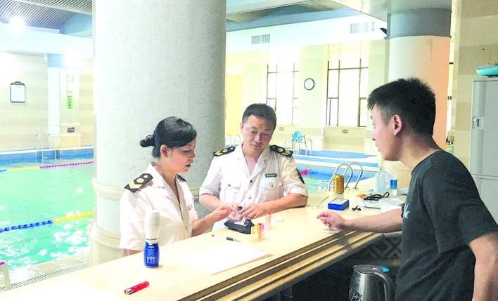 在检查过程中,卫生监督执法人员查看游泳池是否清池达标,池水循环水过滤水泵是否能正常开启、是否设置溢水槽分离漂浮物、喷淋系统是否能正常使用等,并对新进安全救生员进行健康体检及卫生知识培训。此外,卫生监督执法人员对已完成开业准备的游泳池进行了水质现场快速抽样检测,基本符合开业条件。7月中旬将进行一轮正规的水质抽样检测,结果将向媒体公布。