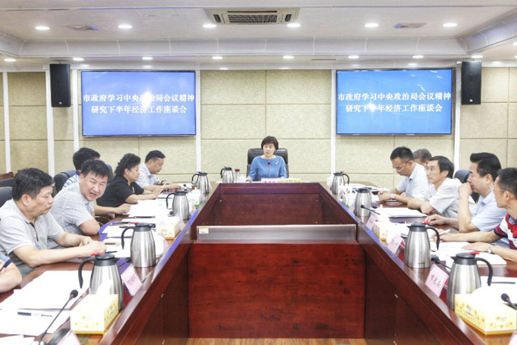 8月13日,市长李爱武主持召开市政府学习中央政治局会议精神研究下半年经济工作座谈会。市领导唐道明、熊炜、杨昆、刘晓英,市政府秘书长刘传汉参加。