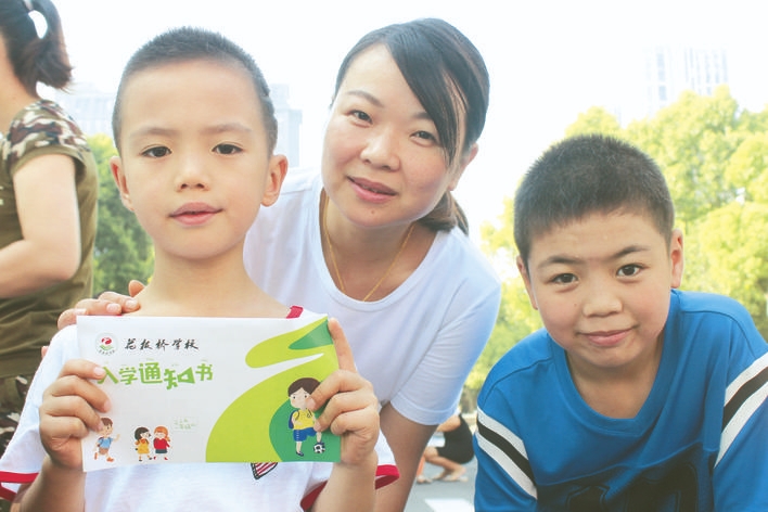 花板桥小学一年级新生喜领入学通知书