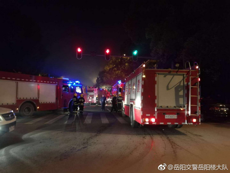 岳阳楼交警大队教导员侯俊带领大队事故和巡逻应急分队在新路口红绿灯路口和七中方向调头口进行交通管制,保障了消防车快速停靠第一时间开展了救援