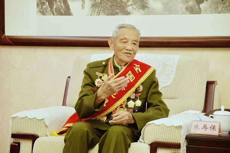 今年91岁的朱再保老人1951年10月入伍,同年参加抗美援朝,获朝鲜民族独立勋章。在离休后的40多年时间里,朱再保投身环保、致力公益,3次荣获全国先进军休干部表彰,4次荣获中国关心下一代先进个人表彰,当选全国环保之星,被评为全国环保十佳爱心大使、中国十大社会公益之星,共获得60多个奖项,多次受到党和国家领导人接见。今年7月26日,朱老前往北京参加全国退役军人工作会议第一次全体会议时,被安排在习近平总书记身边合影留念。