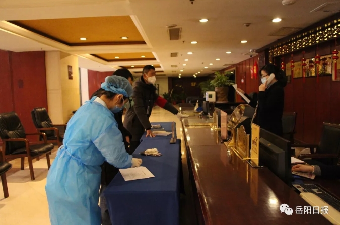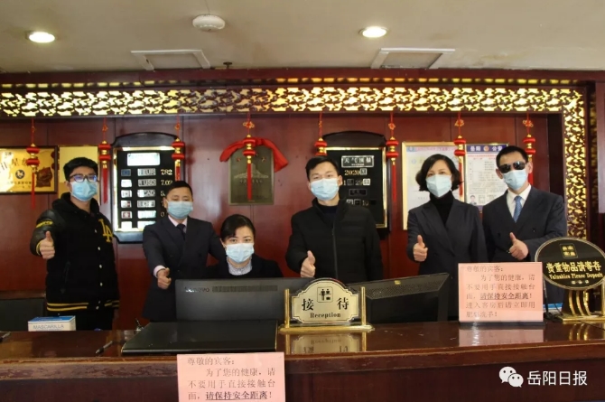 1月28日,岳阳市突发公共卫生事件应急指挥部公布对疫源地人员开放定点服务场所后,作为定点接待酒店的泰和大酒店立即全员动员。