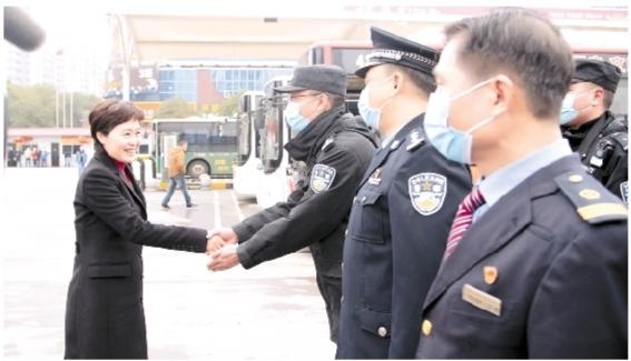 市长李爱武看望慰问驻守一线的警务、城管、票房及公交调度工作人员。 周姣姣 摄